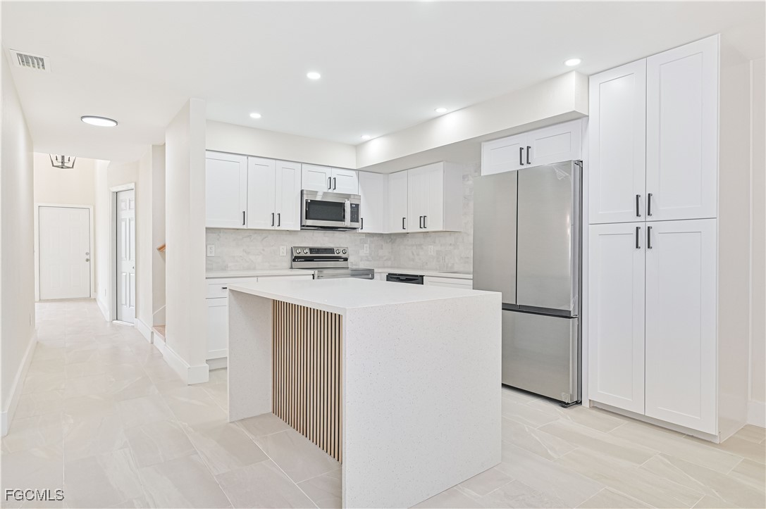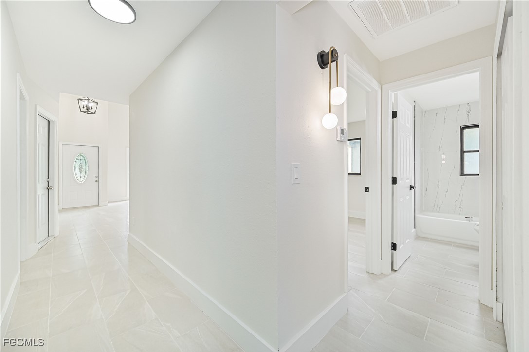 Welcome to this Stunning renovated duplex In San Carlos park. This is the biggest size of duplex in San Carlos park with 6 bedrooms 6 bathrooms 2 car garage and 4434 square feet under air. 7327 unit’s second floor could be the perfect opportunity to make the apartment efficiency to bring in rental income or a perfect mother-in-law suite or private second owner suite with that separated individual central AC unit, large living space, huge bedroom and bathroom on that second floor. The property has been totally renovated from top to bottom. The property provides new roof, new well, new water heaters, new water system, new garage doors for peace of mind. Step inside, you'll be greeted by stunning Porcelain tile that graces the entire 2 floors of home with 5 inches base board gives it the modern feel. The huge first floor living room with vaulted ceiling is perfect space to relax with much needed separation. The kitchen overlooks dining room offers a great practical space for family and friends to gather and partying. This luxury kitchen carries brand new hardwood cabinets with soft closing features, beautiful quartz countertops, and new stainless-steel appliances. Bathrooms have been totally redone with new tile showers, new toilets, and new vanities. The property has brand-new LED lighting throughout the entire house. The property offers a private backyard up against the canal with much needed privacy. Everything has been redone like a new construction with a resale price tag. It is perfect generational property or nice investment student housing. With proximity to Hertz Arena, Coconut Point Mall, and the pristine shores of Fort Myers Beach, FGCU, endless entertainment and recreational opportunities are at your fingertips. Hurry up before it is gone.
