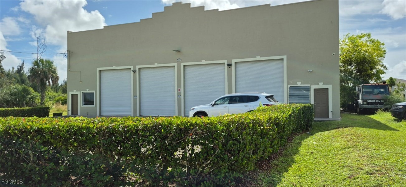 3 Overhead door in front and 3 overhead door in the back of the building with plenty of parking space in the back and in front.The garage space is 43' wide and 45' deep