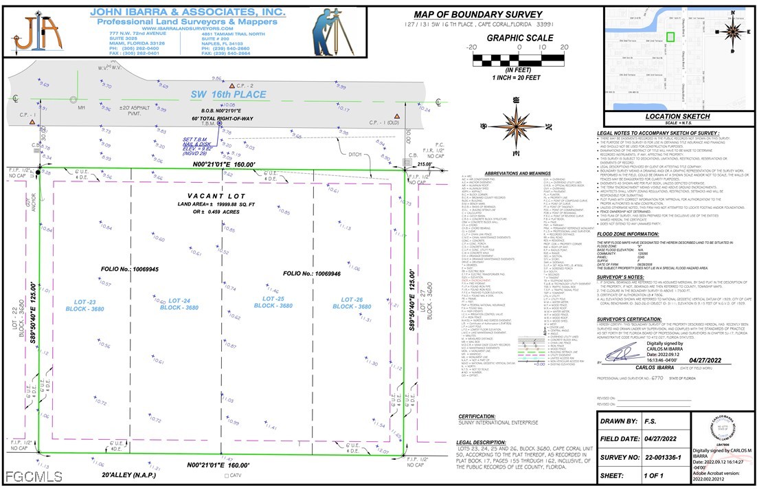 This double commercial lot totals ±20,000 SF (±0.46 acres) and sits in a steadily growing commercial corridor of Cape Coral. With flexible commercial zoning and a wide range of potential uses, the property is ideal for an owner-user or investor seeking a well-located development site. Located directly off Chiquita Boulevard and just moments from Pine Island Road, the site is surrounded by steady commercial activity and offers a strong opportunity for long-term growth or new construction.