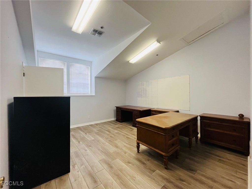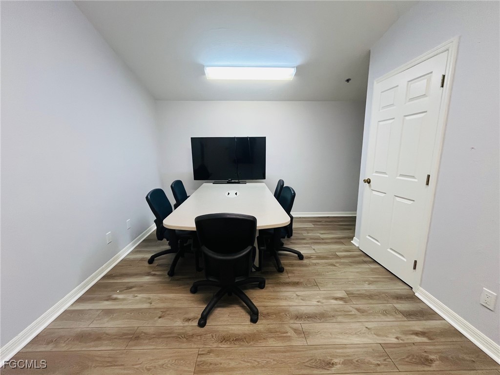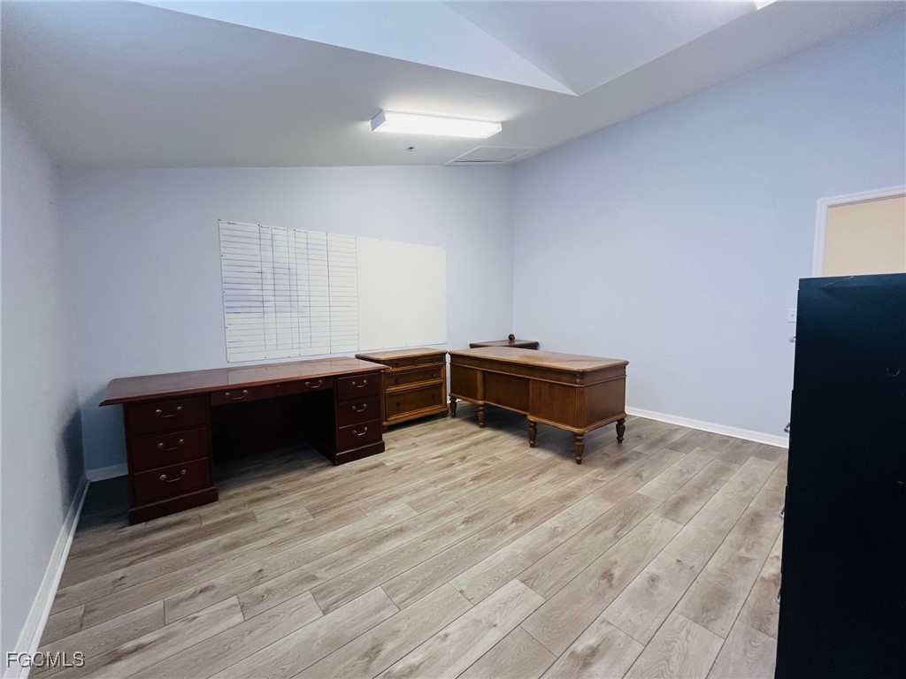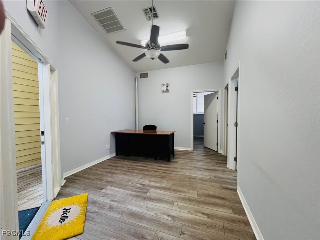 Well-maintained commercial unit offering three private offices, a reception area, and two bathrooms. Features luxury vinyl flooring throughout and abundant natural light, creating a bright and professional workspace. Centrally located in Lee County near the Midpoint Bridge connecting Cape Coral and Fort Myers, with excellent access to I-75, US-41, Summerlin Road, and Colonial Boulevard.