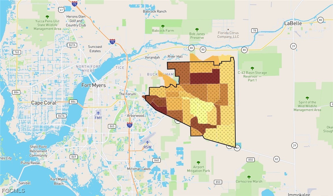 This quarter-acre lot on the northwest side of Lehigh Acres is an excellent residential site, perfect for building your dream home. Conveniently located near Buckingham Road, offering quick and easy access to Fort Myers with minimal traffic.