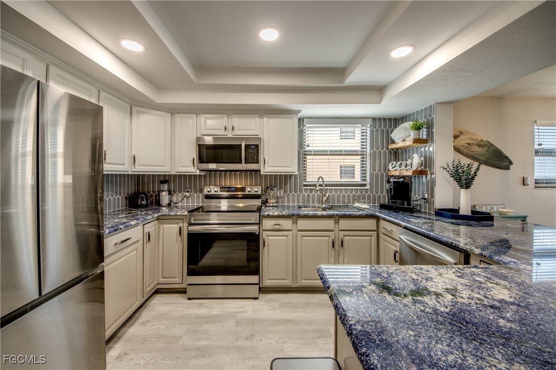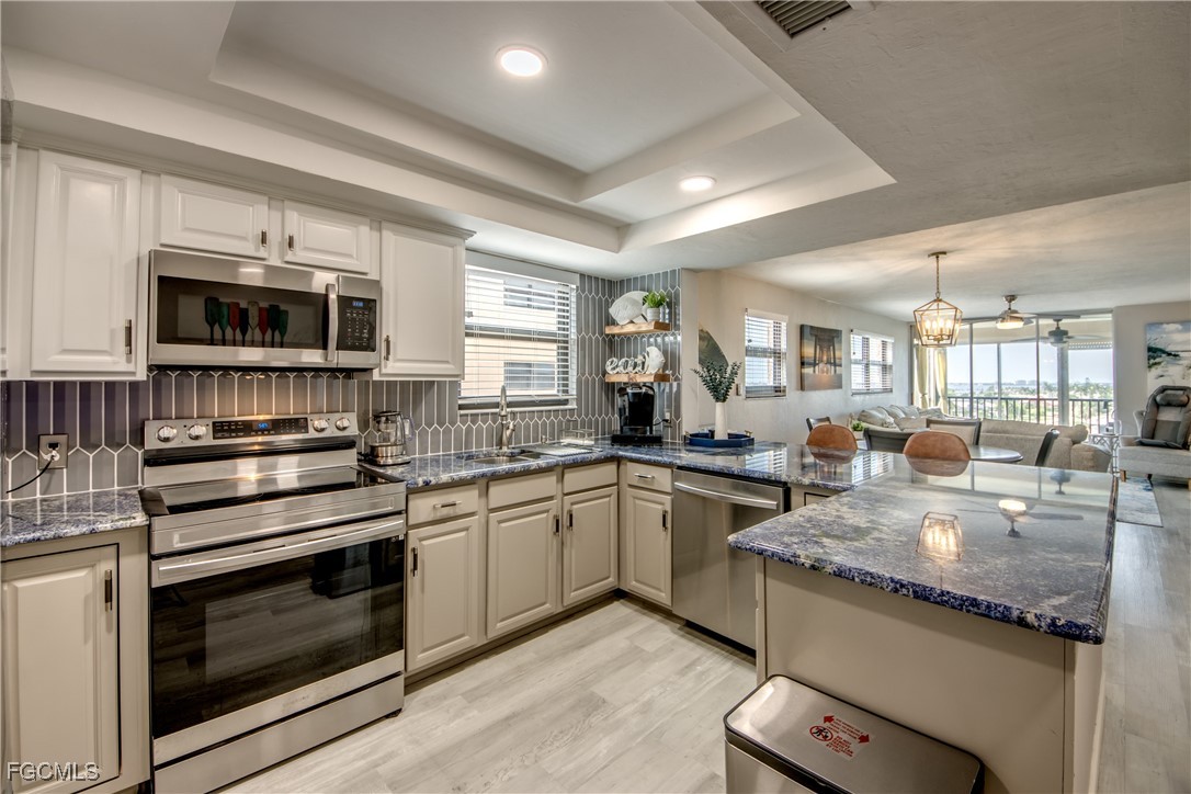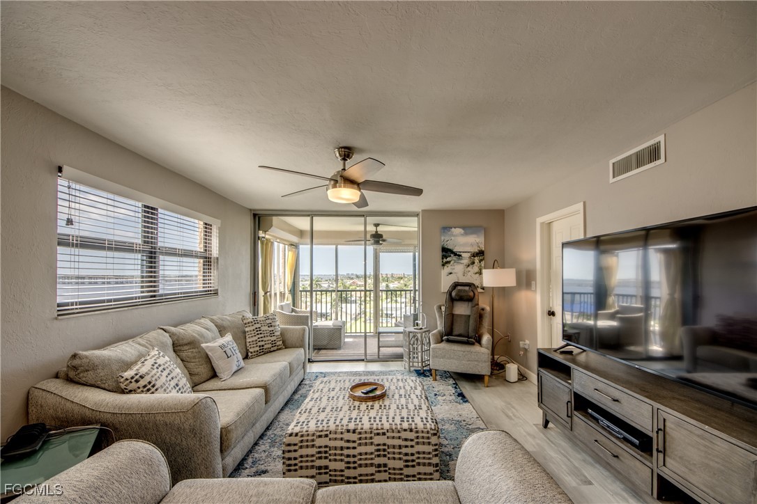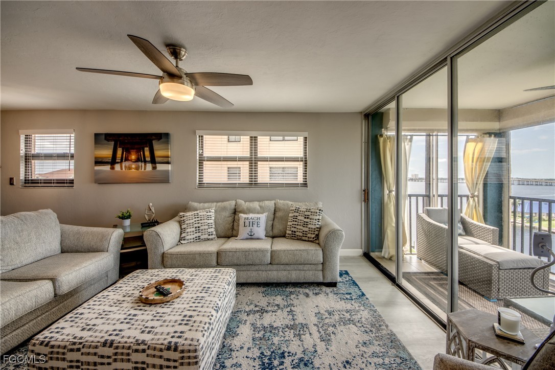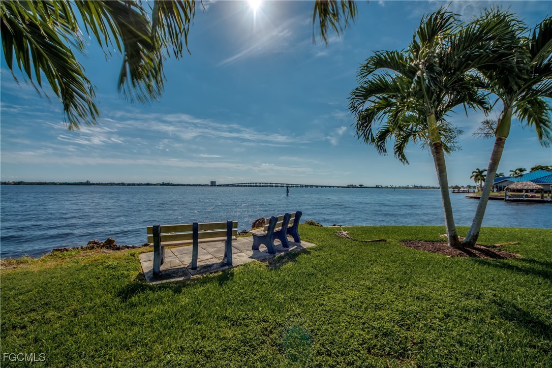 Elegance meets comfort in this Stunning Waterfront Condo that's tastefully decorated with amazing views of the wide intersecting canal and the Caloosahatchee River. Truly a Beautiful Condo! Wake up to awe-inspiring river and canal views from every room in this impressive, spacious 2-bed, 2-bath condo. Elevate your lifestyle on the 7th floor, so peaceful, free from the hum of A/Cs and offering the perfect balance of comfort and tranquility. Upgraded, high-end kitchen will bring out the Chef in you which features granite countertops, SS appliances & stylish tile backsplash. Start each day inspired as you awake to gorgeous views from your luxurious primary suite. Furnishings Negotiable! New Wi-Fi-enabled AC in 2022. Condo has premium LVP flooring throughout, open floor plan, large laundry room for your convenience with FULL size washer & dryer, split bedrooms, built-in cabinets with Murphy bed & pretty screened balcony to enjoy all year round plus you can watch the Fourth of July fireworks from your Lanai. Hurricane impact-resistant windows provide added peace of mind, while two elevators ensure quick and easy access to your unit. Relax by the sparkling Pool which has one of the best locations with panoramic views of the RIVER, enjoy the calming water and boats traveling out to the Gulf. Direct Access, No Bridges! Located at the end of Beach Parkway, this quiet and desirable location is just a short walk to the soon-to-be-completed $16 million renovated Jaycee Park. River Towers Condo is an active 55+ community offering a variety of amenities, including a heated riverfront pool, shuffleboard, a Tiki area perfect for relaxing while watching dolphins and manatees, a BBQ area, 2 community rooms, shuffleboard courts & a library. Each unit is assigned a parking spot with plenty of guest parking & an additional 10x10 storage unit. The HOA includes water & cable, with complete restrictions on pets, smoking, and rentals for the first three years of ownership. Imagine waking up every day to world-class fishing, vibrant marine life, and endless opportunities for exploration. Whether you're looking for a serene second home or a permanent residence, River Towers provides an unbeatable blend of prime location, care-free living and top-notch community amenities. This beautiful condo is your gateway to the ultimate Florida lifestyle.