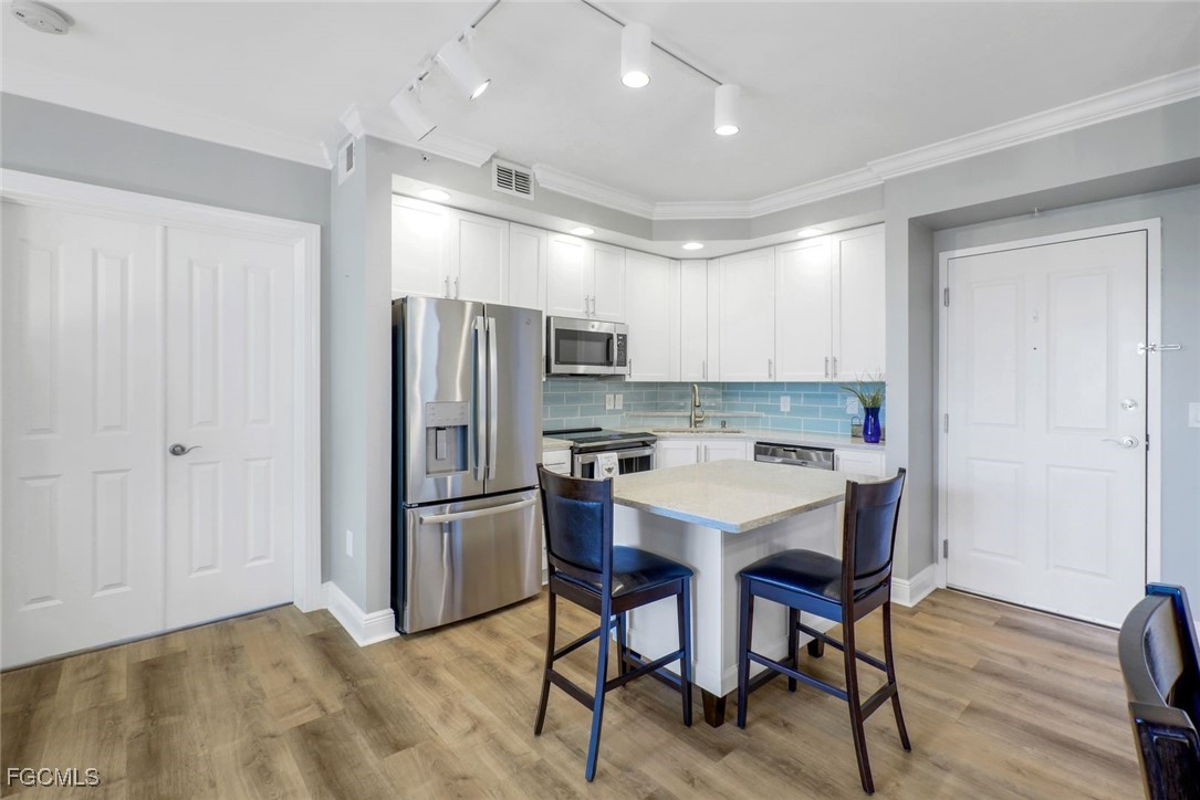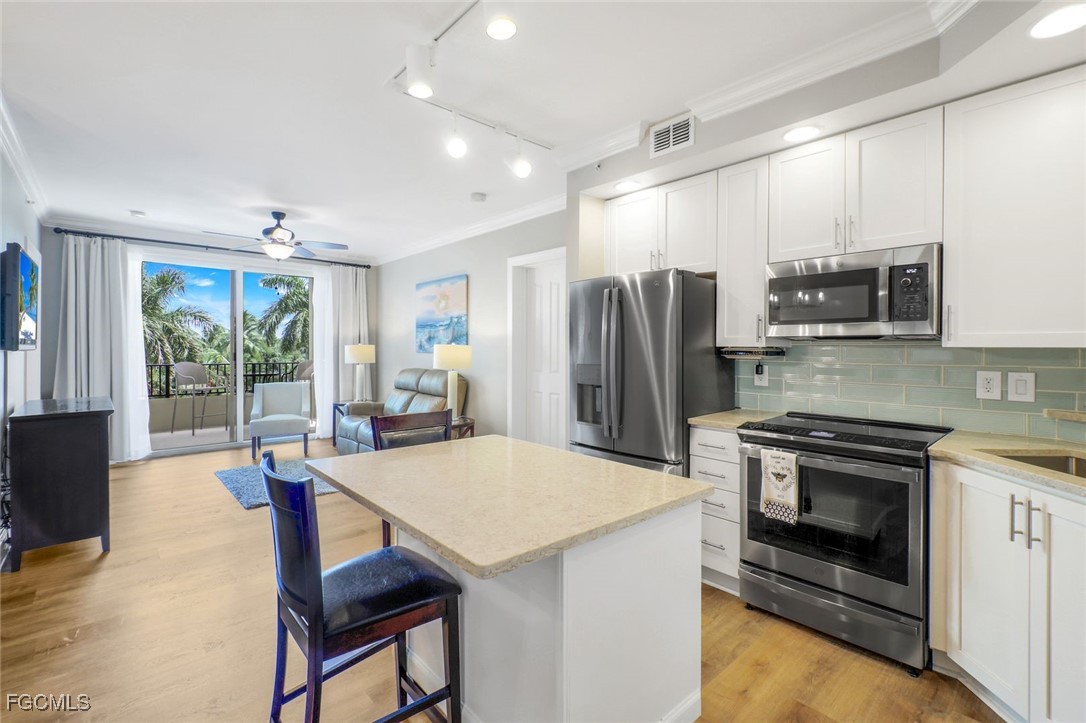 Welcome to Alta Mar, where resort-style living meets the charm of Downtown Fort Myers. This beautifully updated 2-bedroom, 2.5-bath condo offers the perfect blend of comfort, style, and convenience — and it’s being sold fully furnished, ready for you to move right in. The home features two master suites, each with a private bath and walk-in closet for ultimate privacy, along with a guest powder room for added convenience. Inside you’ll find new luxury vinyl plank flooring in the kitchen and bedrooms, a fully upgraded kitchen with new stainless appliances, elegant quartz countertops, a raised island, and a stylish backsplash. The residence is also appointed with a full-size washer and dryer, hurricane-impact glass throughout, and a newly added Murphy Bed, perfect for guests or multi-use space.