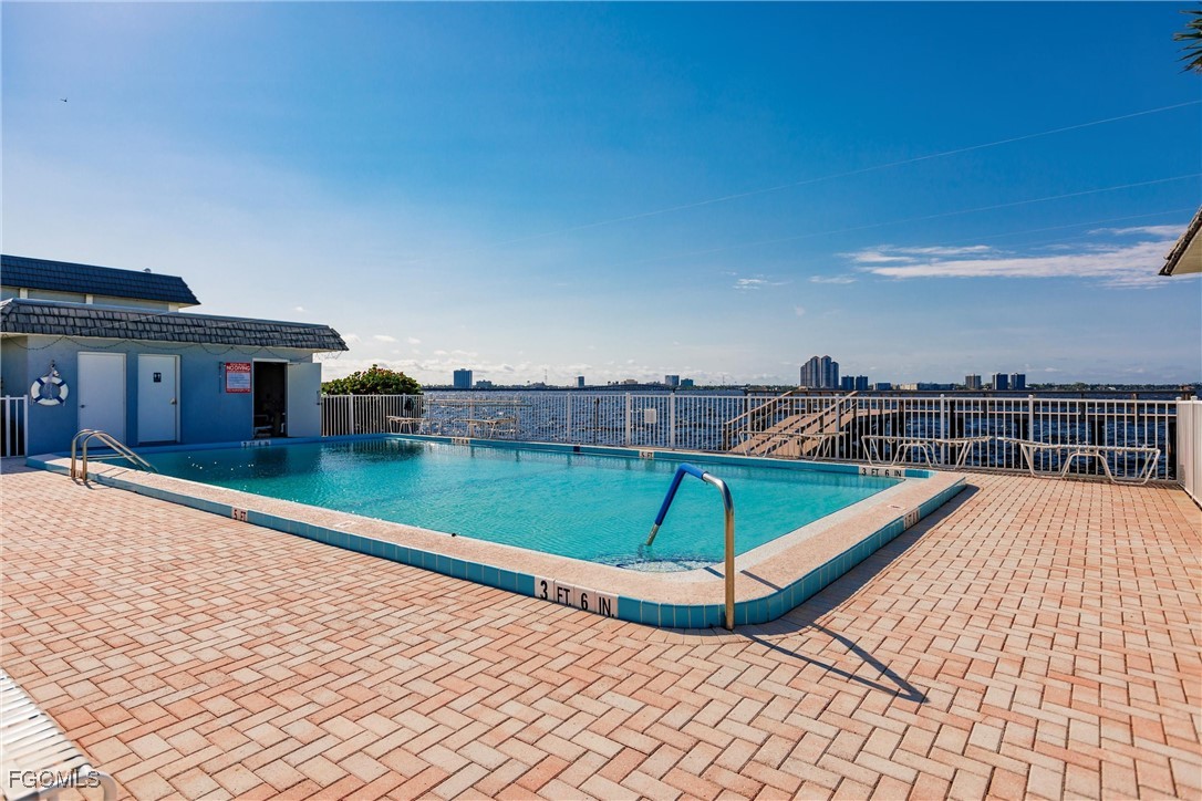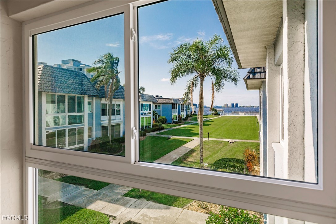 Beautifully updated condo with sweeping views of the Caloosahatchee River and the Downtown Fort Myers skyline. This spacious residence features a large open-concept layout with luxury vinyl plank flooring throughout. The upgraded kitchen and bathrooms showcase modern finishes, with hurricane-impact windows, a newer electrical panel(2023), and a newer A/C system(2023) provide peace of mind.