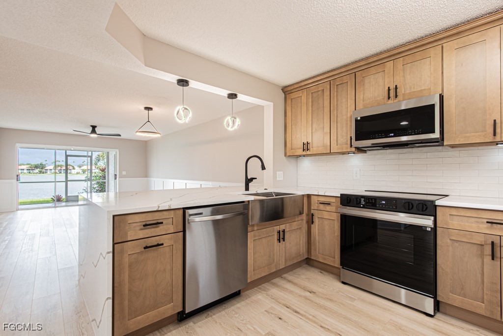 Beautifully remodeled 2 bedroom 2 bath condo in desirable Emerald Lakes. PRIME LOCATION! Step inside to find an open-concept living space with natural light, updated flooring, and sleek, contemporary kitchen with brand-new appliances, cabinetry, and quartz countertops. Both bathrooms completely redone. Screened-in porch, offering private, unobstructed views of the lake. Split-bedroom layout, in-unit laundry, hurricane shutters, and ample storage. Emerald lakes is a fully gated community adding an extra layer of security and peace of mind. Residents can enjoy a newly renovated pool, with a second pool update underway. Schedule your showing to see this beautiful unit!