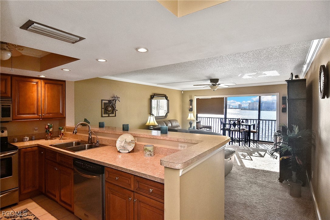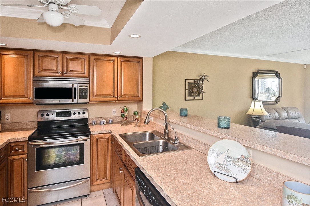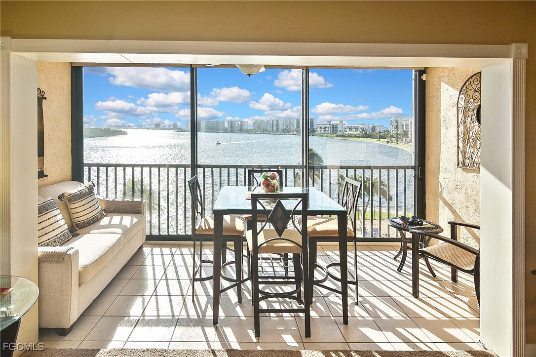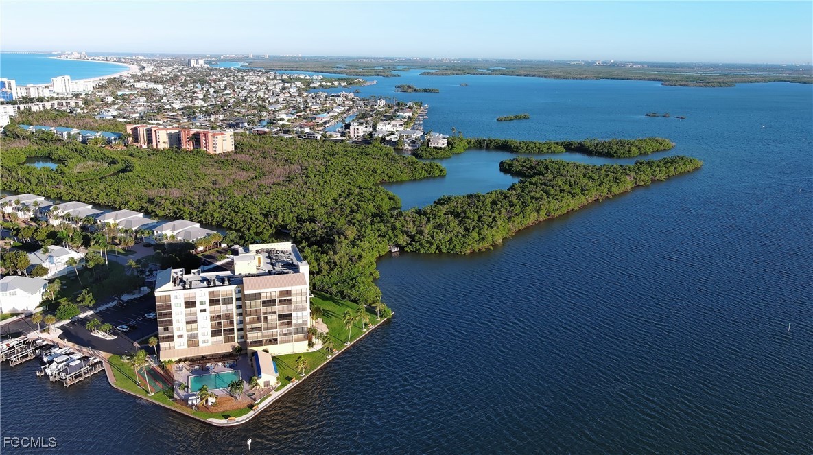 YOUR PARADISE COASTAL RETREAT AWAITS! Step into paradise with this furnished, move-in ready residence offering breathtaking panoramic water views of Estero Bay. Enjoy brilliant sunrises, watch dolphins and manatees play, and feel the tranquil breezes from your enclosed lanai oasis featuring impact glass sliders and a pull-out sleeper sofa. This elegantly appointed home features an open-concept, Tommy Bahama–inspired design, two full bathrooms, upgraded plantation shutters in the Master Bedroom, a gourmet remodeled kitchen with stainless steel appliances, soft-close cabinetry, and a stylish breakfast bar. Indulge in resort-style amenities including an oversized heated pool and spa, clubhouse with showers, grills, shuffleboard, and serene waterfront seating. The intersecting canal provides direct Gulf access to marinas, waterfront dining, and the new Margaritaville resort. Located on the peaceful south end of Fort Myers Beach, just moments from sugar-white sands, Santini Plaza, and the beach trolley. Assigned parking, ample guest spaces, and convenient laundry on every floor complete this luxurious coastal escape. Experience refined island living — where every day feels like vacation.