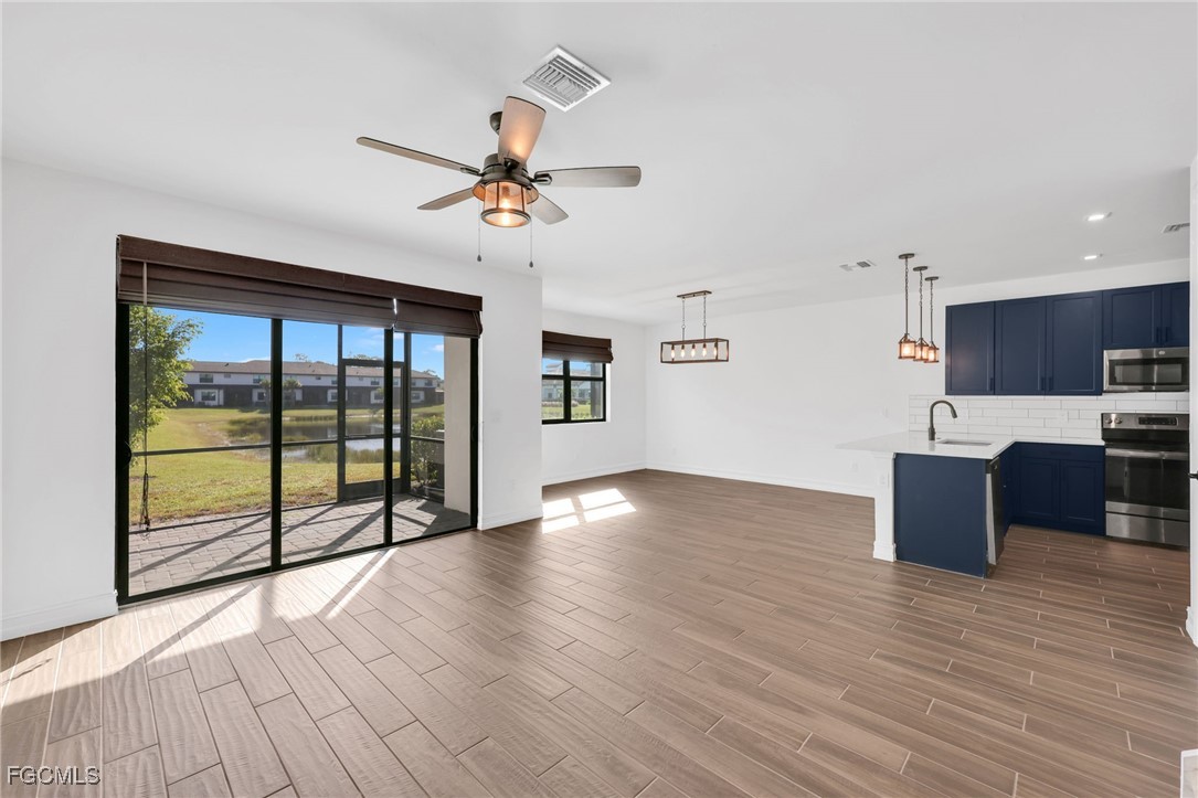 Discover the only available waterfront home in the elegance in Vanderbilt Reserve Community. This beautifully maintained 3-bedroom, 2.5-bath townhome features a bright, open floor plan with a gourmet kitchen that includes granite countertops, a pantry, stainless appliances, warm wood cabinetry, and a spacious island designed for entertaining. The kitchen and living room offer amazing lake views, with a set of sliders opens to a large screened patio overlooking the water, ideal for enjoying peaceful mornings with a cup of coffee and breathtaking sunrises. A stylish half bath on the main level adds convenience. The home features abundant windows that flood the interior with natural light. The primary suite offers a spacious bedroom, an enormous walk-in closet, and a large ensuite bathroom with dual sinks and a tiled shower with a glass enclosure. The other bedrooms are also large, inviting with walk in closets. There is also a small living area upstairs for office or den space. The tiled flooring flows throughout the main living areas, while plush carpet provides comfort in the bedrooms. The home includes an indoor laundry room, a two-car garage, with large storage closet and painted floors. Impact windows and doors provide added security and peace of mind. The home is also not located in a flood zone. Vanderbilt Reserve is a gated, resort-style community with a heated pool and spa, a fitness center, and a clubhouse. Cable and internet are included in the very low HOA fees. The property is in a prime location near shopping, dining, and entertainment. This is a rare find; schedule your private showing today, You won't be disappointed.