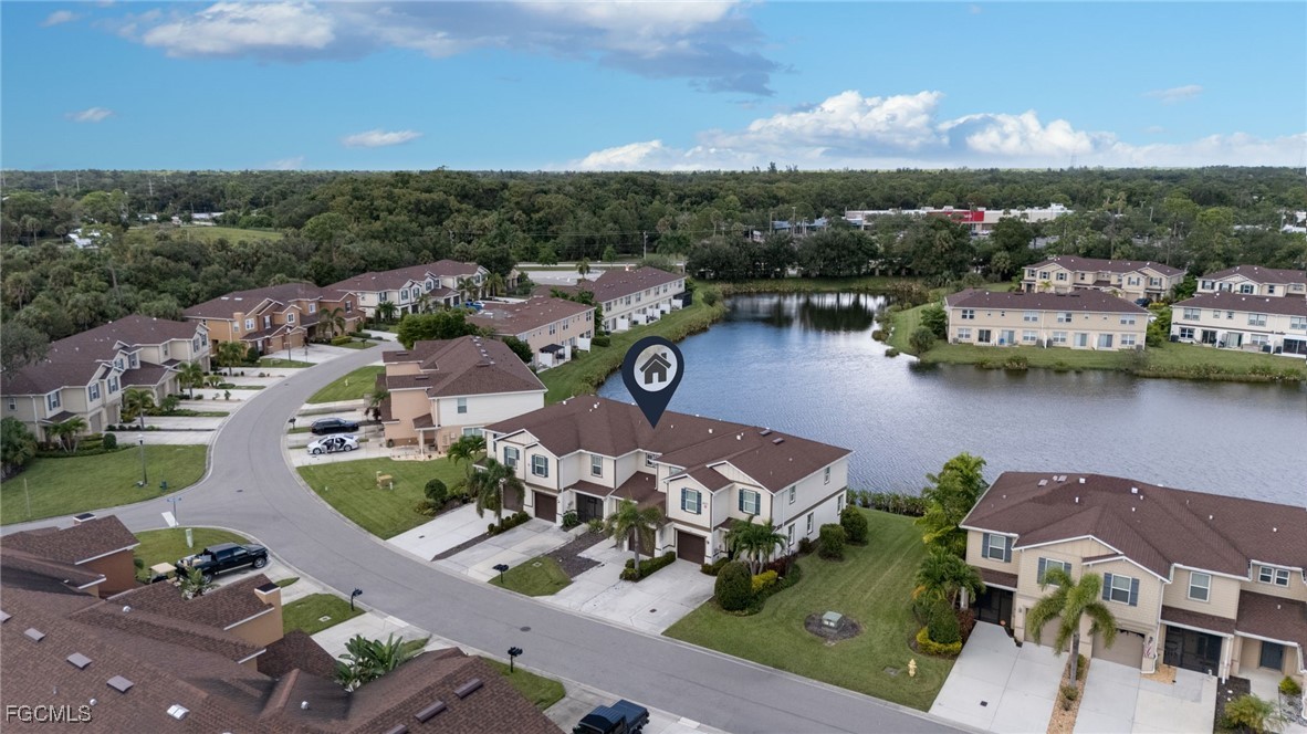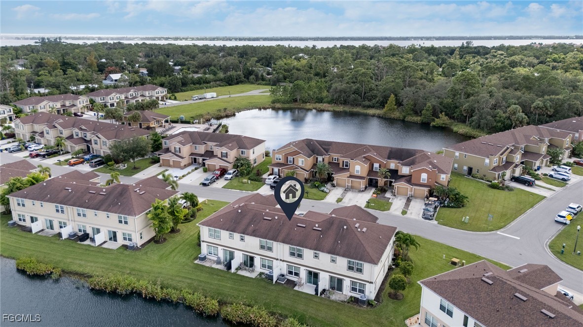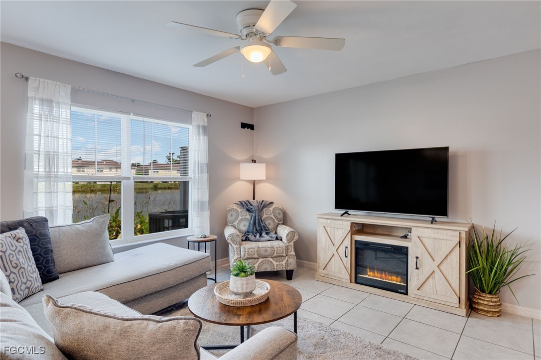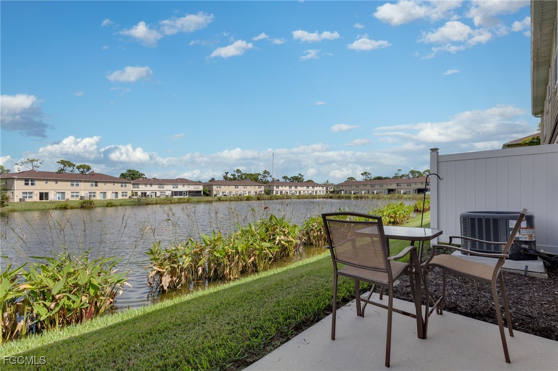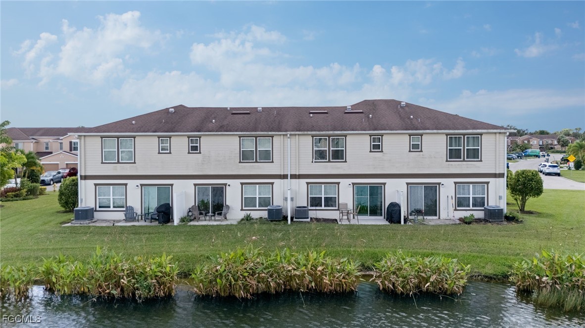 Welcome to your lakefront dream home, in the desirable gated community of Bayshore Commons! This stunning 3 bed, 2.5 bath townhome is loaded with upgrades, including a sleek, modern kitchen with stainless steel appliances, granite countertops, and a spacious open concept living area complete with a cozy fireplace. From inside your future home, you will find sparkling water views of the lake. Outside, your open air lanai offers the perfect escape for relaxing lakeside. Enjoy total peace of mind with a new roof, brand new 2.5 TON Rudd A/C HVAC unit, large hybrid electric water heater, and full storm shutter protection. Upstairs, you will find a split bedroom layout with an oversized primary suite featuring a walk-in closet large enough to double as a den. Your primary bathroom boasts ample room with dual sink vanity and a walk-in shower. Additionally, you will find two generously sized bedrooms and an additional large full bath. Within the gates of Bayshore Commons, you will enjoy access to a resort-style pool and a clubhouse ideal for hosting events or a family party. This property is centrally located just minutes from Downtown Fort Myers, Cape Coral, and the sun soaked beaches of the Gulf. Don't miss your chance to experience Florida living at its finest. Don't wait, schedule your private showing today!