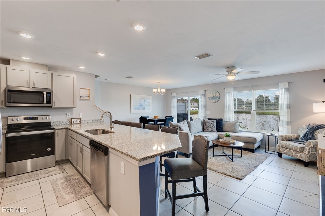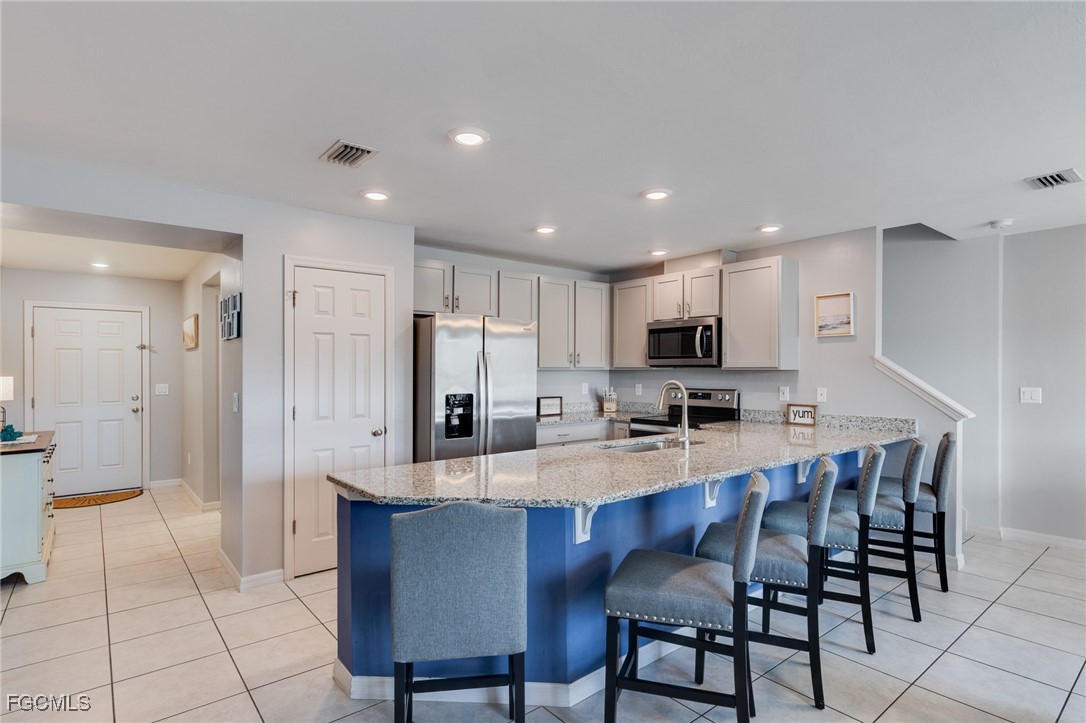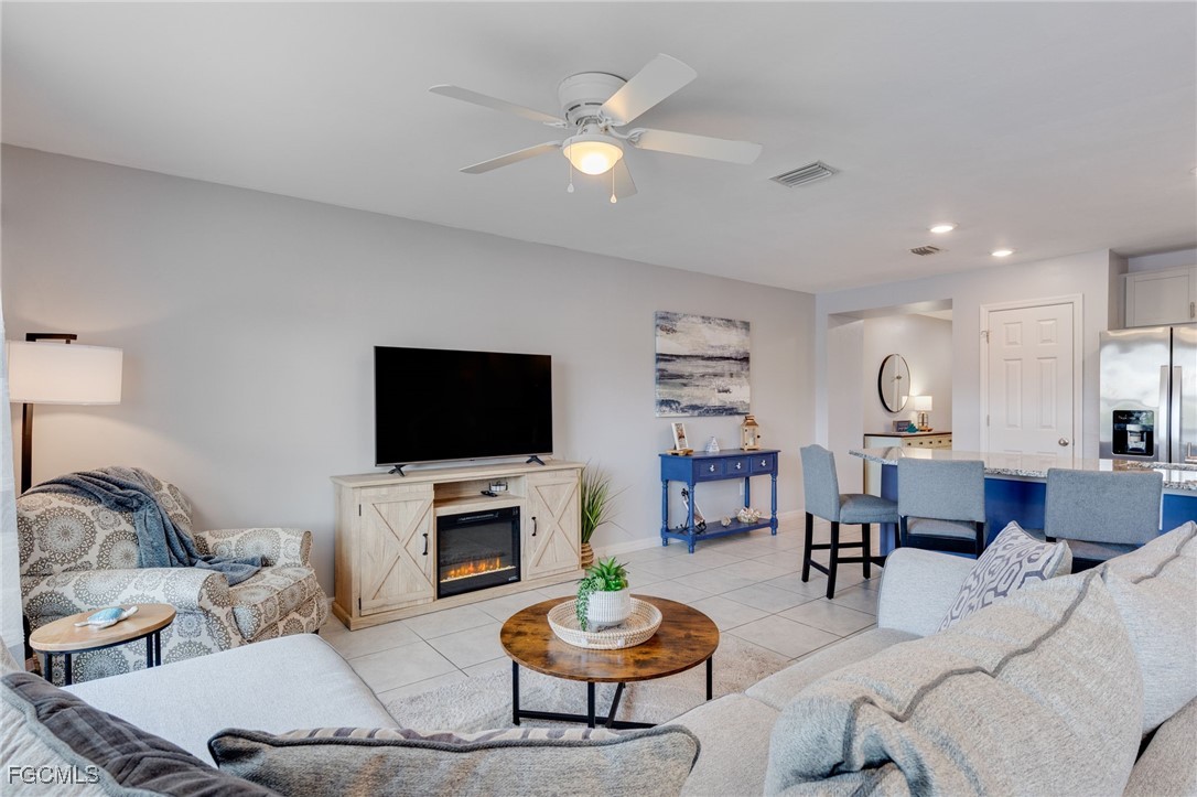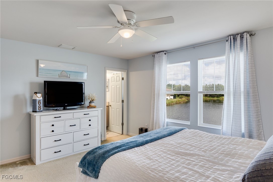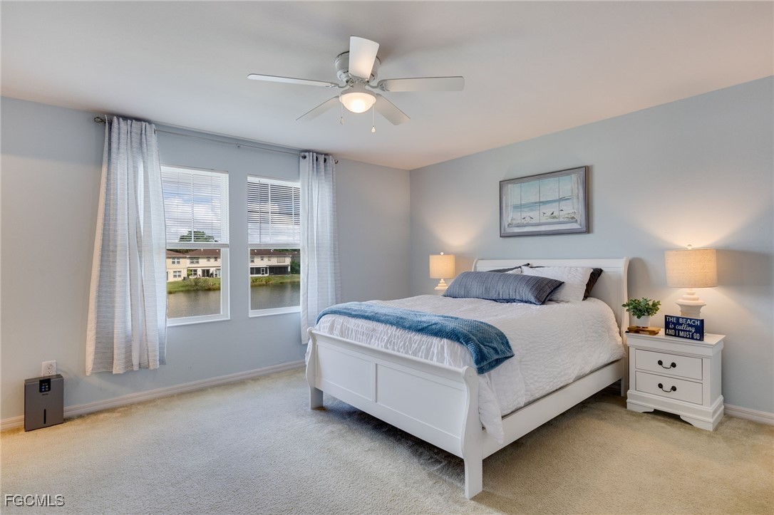 Welcome to your lakefront dream home, in the desirable gated community of Bayshore Commons! This stunning 3 bed, 2.5 bath townhome is loaded with upgrades, including a sleek, modern kitchen with stainless steel appliances, granite countertops, and a spacious open concept living area complete with a cozy fireplace. From inside your future home, you will find sparkling water views of the lake. Outside, your open air lanai offers the perfect escape for relaxing lakeside. Enjoy total peace of mind with a new roof, brand new 2.5 TON Rudd A/C HVAC unit, large hybrid electric water heater, and full storm shutter protection. Upstairs, you will find a split bedroom layout with an oversized primary suite featuring a walk-in closet large enough to double as a den. Your primary bathroom boasts ample room with dual sink vanity and a walk-in shower. Additionally, you will find two generously sized bedrooms and an additional large full bath. Within the gates of Bayshore Commons, you will enjoy access to a resort-style pool and a clubhouse ideal for hosting events or a family party. This property is centrally located just minutes from Downtown Fort Myers, Cape Coral, and the sun soaked beaches of the Gulf. Don't miss your chance to experience Florida living at its finest. Don't wait, schedule your private showing today!