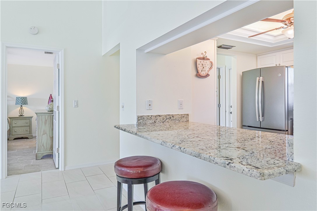 Welcome to your Southwest Florida paradise! This stunning Gulf-access condo offers everything a boater could dream of including your ownboat slip and quick access to the Gulf. Located on the second floor, this beautifully updated condo features cathedral ceilings and luxuriousfinishes. Spanning 1240 sq. ft., this 2-bedroom, 2-bathroom home features a spacious main suite with an ensuite bathroom, a large closet, anda private lanai where you can soak in beautiful river views. The condo is being sold fully furnished and it comes with a boat slip. Recent updatesinclude METAL ROOF (2023), impact-resistant windows, storm smart lanai shade, WATER HEATER (2022), refreshed pool and decking (2023),and NEW AC (2022). This condo is truly a gem—schedule your showing today to experience it in person!