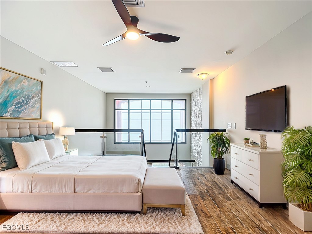 One or more photo(s) has been virtually staged. Experience waterfront living at its best in this elegant condo at St. Tropez & Riviera, located in the heart of Fort Myers! This beautifully maintained first-floor unit features an open-concept design with floor-to-ceiling windows overlooking the Caloosahatchee River. The main level boasts engineered hardwood flooring, while the second-floor loft area is finished with ceramic tile, combining warmth and durability throughout. The modern kitchen offers stainless-steel appliances, sleek quartz countertops, and plenty of space for entertaining. Enjoy the convenience of having your assigned parking space on the same level as the unit—no elevators needed for daily access! Residents indulge in resort-style amenities including a heated pool, spa, fitness center, theater room, and direct river access for kayaking. Ideally situated just minutes from the vibrant Downtown Fort Myers River District, with plenty of restaurants, cafés, galleries, and entertainment. Outstanding hurricane history adds peace of mind—this condo endured two major hurricanes in the past five years with no flooding or damage to the unit. Move-in ready and perfect for those seeking a blend of modern comfort, security, and central Florida lifestyle.