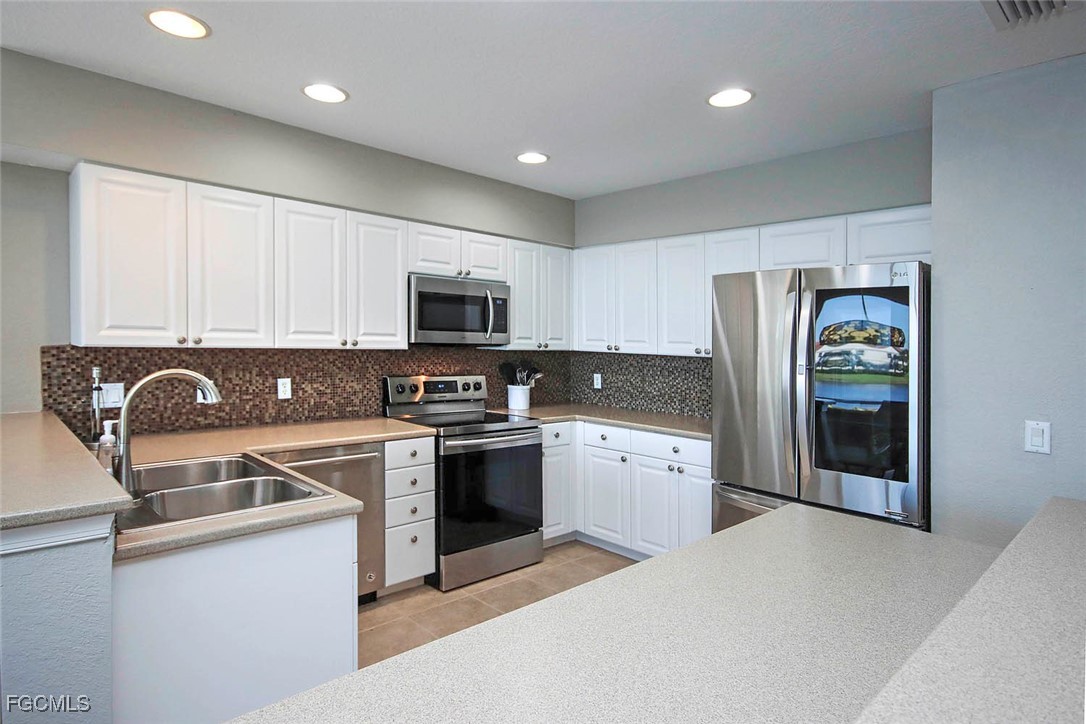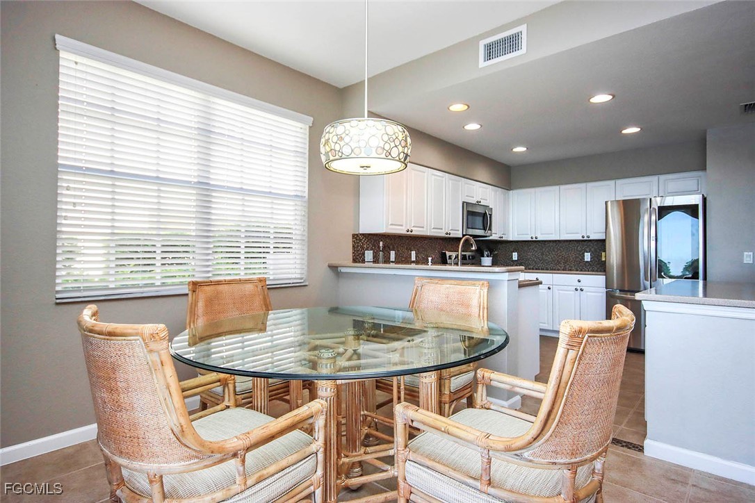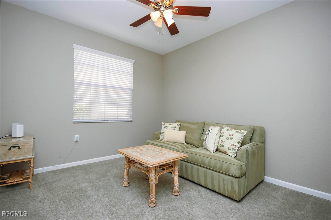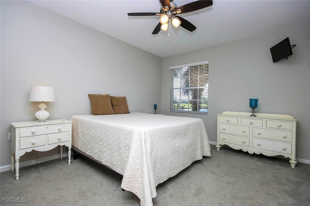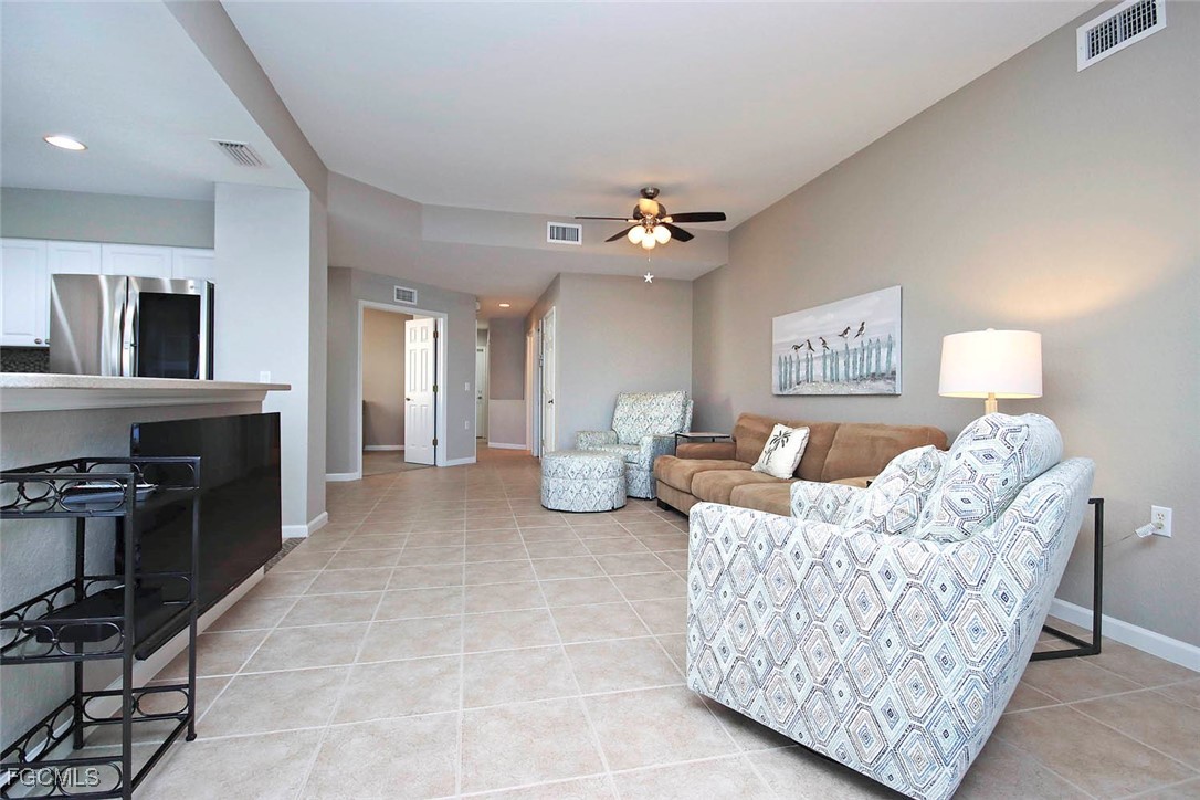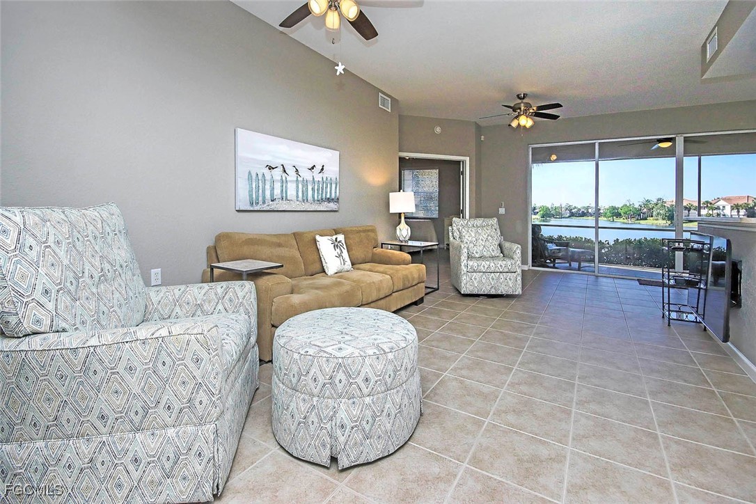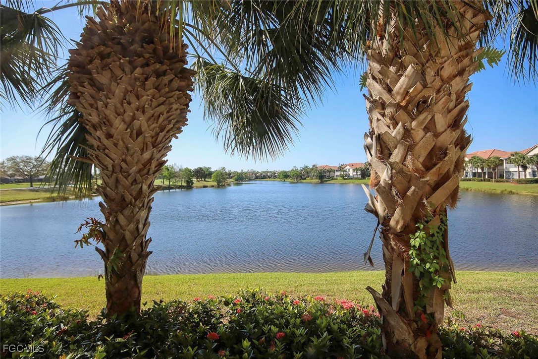 EXCELLENT SOUTHERN LAKE & GOLF COURSE VIEW in highly sought after CROWN COLONY. This 2 bedroom PLUS den, 2 car garage condo is a perfect location near the Sanibel/Fort Myers beaches, shopping & dining and Health Park hospital complex. This condo is beautifully maintained and has neutral decor throughout. The open kitchen features stainless appliances, white cabinetry and corian countertops. The living area is open too and features that VIEW! The primary suite also has the view with access to the lanai, a huge walk-in closet, tub, shower with frameless door, and dual sinks. There is an additional guest bed and bath and a den. Lightly furnished so you can start living your Florida dream right away! The fees include your master HOA fees as well as condo fees and include just about everything: hi-speed internet, cable, water& sewer, lawn care, 24 hour guard gated security, insurance on the building, community pool &spa, fitness center and tennis. This lively community has lots to offer including a Golf Club with no waitlist! You will want to put this on your list!