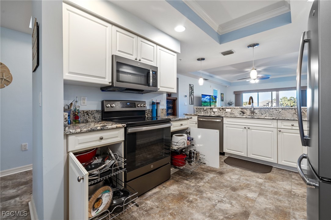 Experience the Best of Florida Living! Welcome to this stunning direct Gulf-access waterfront condo located in the highly sought-after Island Cove community. This beautifully maintained 2-bedroom, 2-bathroom, second-floor unit offers a perfect blend of comfort, style, and functionality. The condo features numerous upgrades, including: Luxury flooring throughout, Granite countertops in the kitchen, Upgraded master bath for a touch of elegance, Convenient pull-out kitchen shelves for storage and ease of access, Newer appliances and a FULL SIZE stackable washer and dryer, Murphy bed in the guest bedroom for added space versatility, Newer AC and water heater installed in 2021. A boater’s dream, this unit includes a 25-ft boat slip with a 10,000-lb lift and dock box, conveniently located close to the condo. The Island Cove community offers an array of resort-style amenities, including pickleball, tennis courts, a sparkling pool, hot tub, clubhouse, BBQ grills, and scenic walking paths. Pet-friendly with approval, this well-maintained community also boasts reasonable HOA fees. Centrally located, this condo provides easy access to all the best Florida has to offer. The furniture is negotiable. Don’t miss this incredible opportunity—schedule your private showing today!