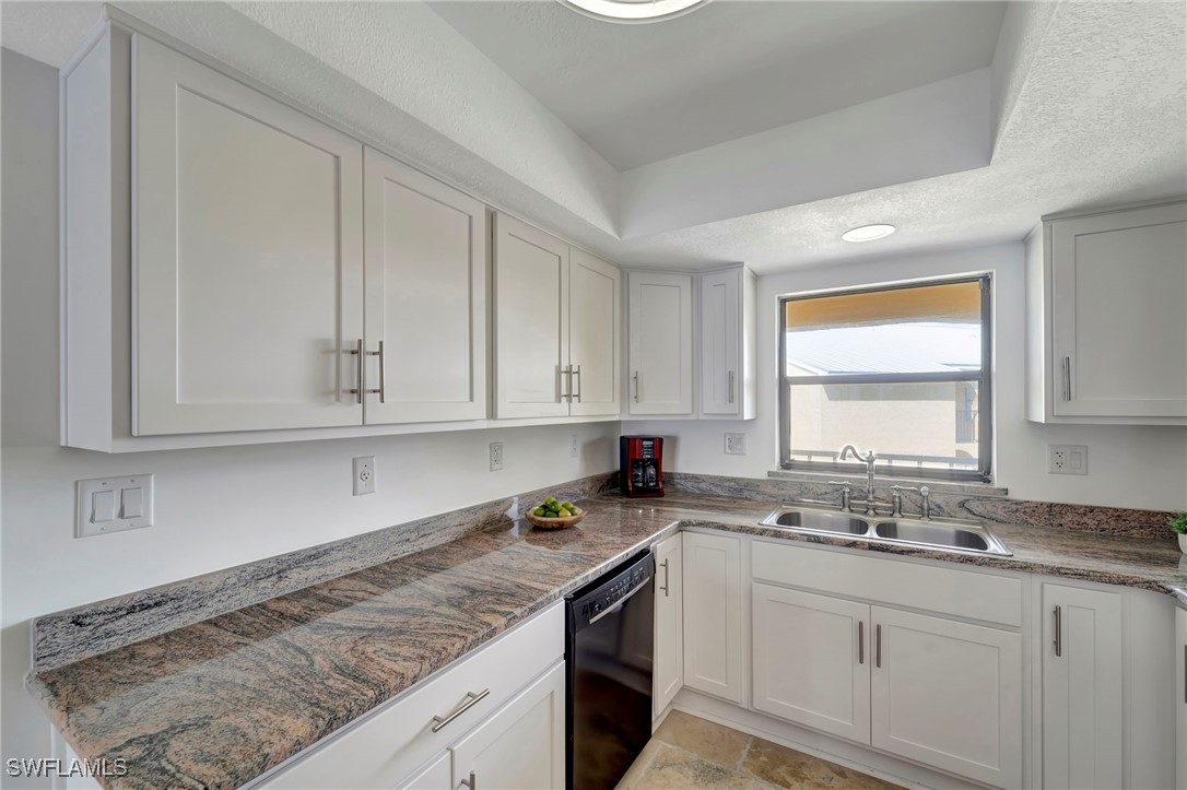 ** Dog Friendly with No weight restrictions! This remodeled, modern 2Bed/2Bath has Blonde Travertine Tiles & is filled with natural light. Granite countertops & fans throughout. Enjoy relaxing in your Private, NEW SAUNA on your WATERFRONT Lanai. NEW A/C. Two sets of sliders for the lanai and an Automatic Kevlar Screen for protection and provides shade. This view never gets old!
