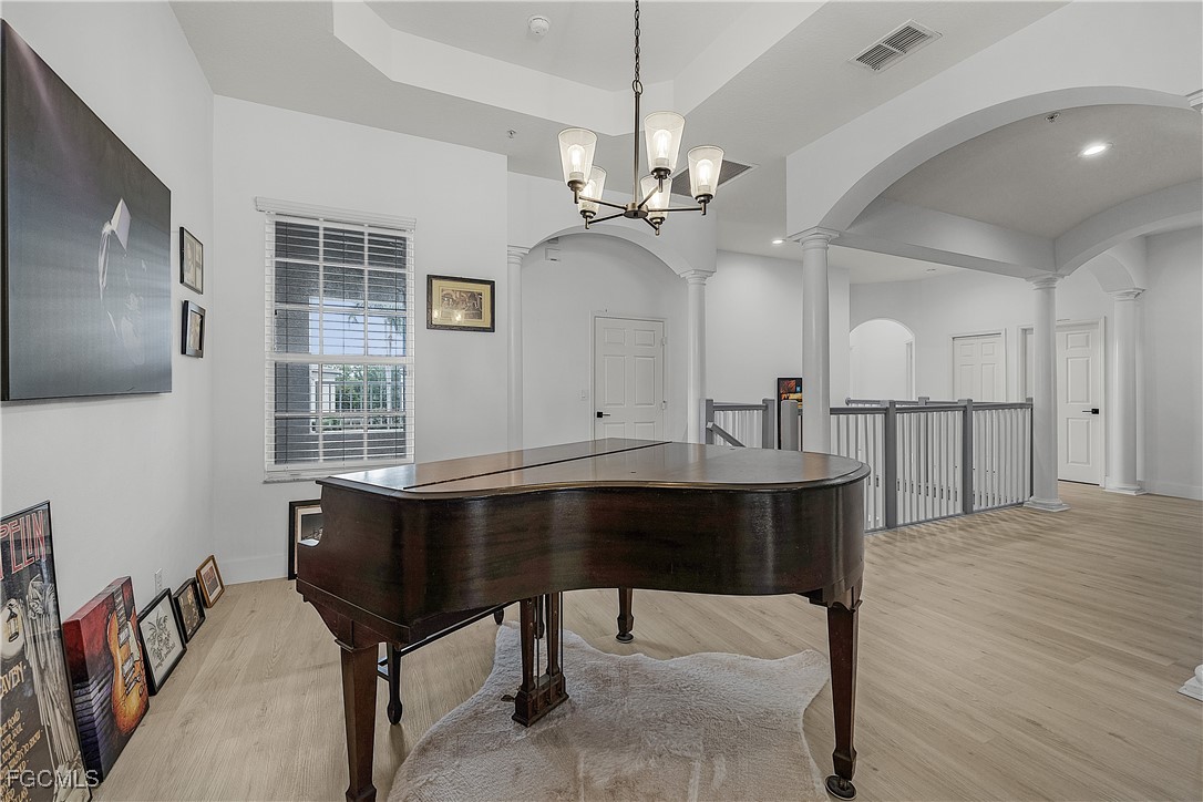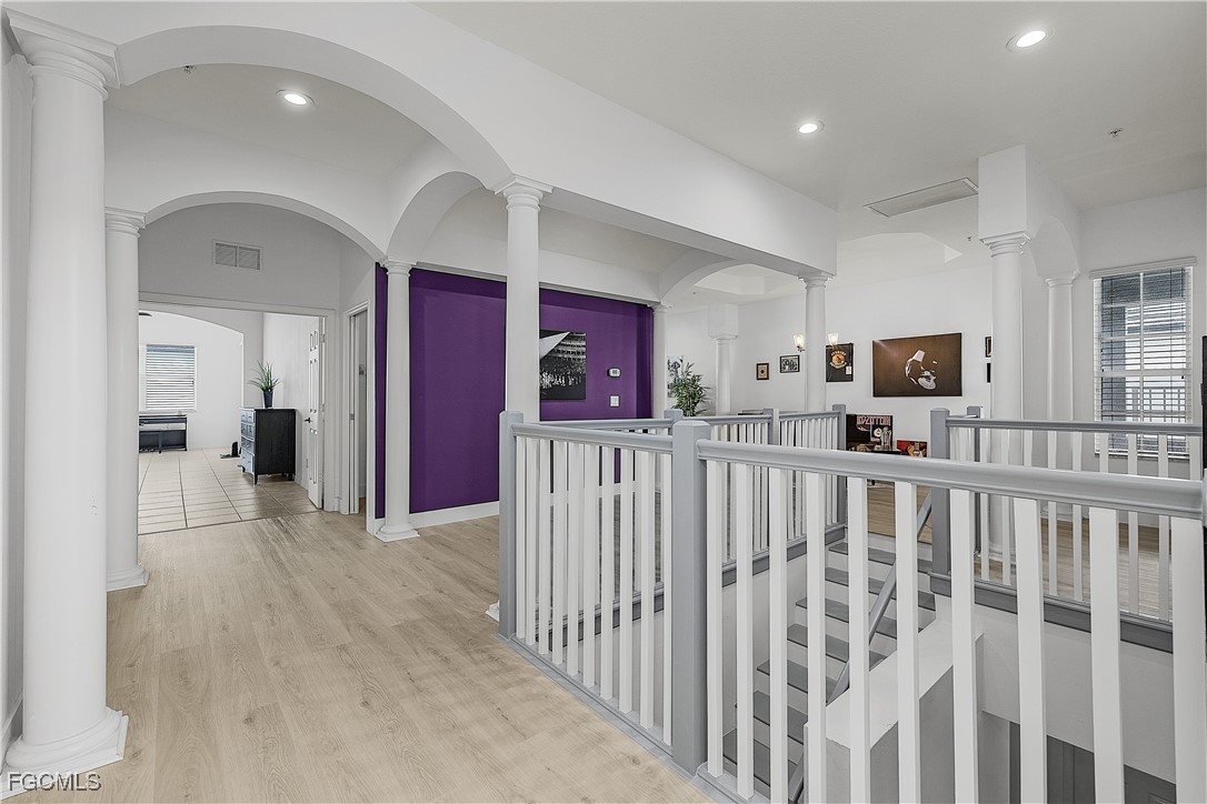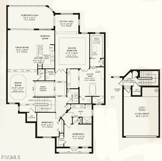Step into exceptional value and modern luxury in this beautifully remodeled end unit coach home in the sought after Meadows of Estero, offering 2878 square feet of refined living space designed for comfort, style, and effortless entertaining. This rare offering stands out with all new flooring throughout, a completely renovated kitchen featuring shaker style soft close cabinetry, Caesar Stone Quartz countertops, new LG stainless steel appliances, and a spacious open layout that flows seamlessly into bright living and dining spaces with soaring ceilings and abundant natural light. The expansive primary suite features a relaxing sitting area, a spa inspired bath with soaking tub and walk in shower, and a wardrobe sized walk in closet. Enjoy peaceful mornings and tranquil evenings on the spacious screened lanai overlooking a private natural backdrop, plus a charming Juliet balcony to welcome fresh breezes. Thoughtful upgrades include accordion storm shutters, designer fixtures, fresh finishes, and a pre built elevator shaft for future convenience if desired. Additional highlights include a versatile den, two guest bedrooms, powder room, large laundry room, and an attached two car garage. Nestled in a gated Estero community known for spacious residences and resort amenities, residents enjoy a clubhouse, fitness center, billiards room, pool and spa, and social spaces all just minutes from Coconut Point, Gulf Coast Town Center, RSW Airport, and some of Southwest Floridas best beaches, golf, and dining. This is one of the most updated and best priced spacious homes in the community, offering luxury, convenience, and an unbeatable value in a prime location.