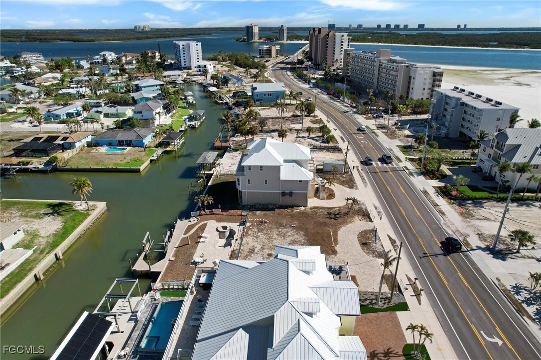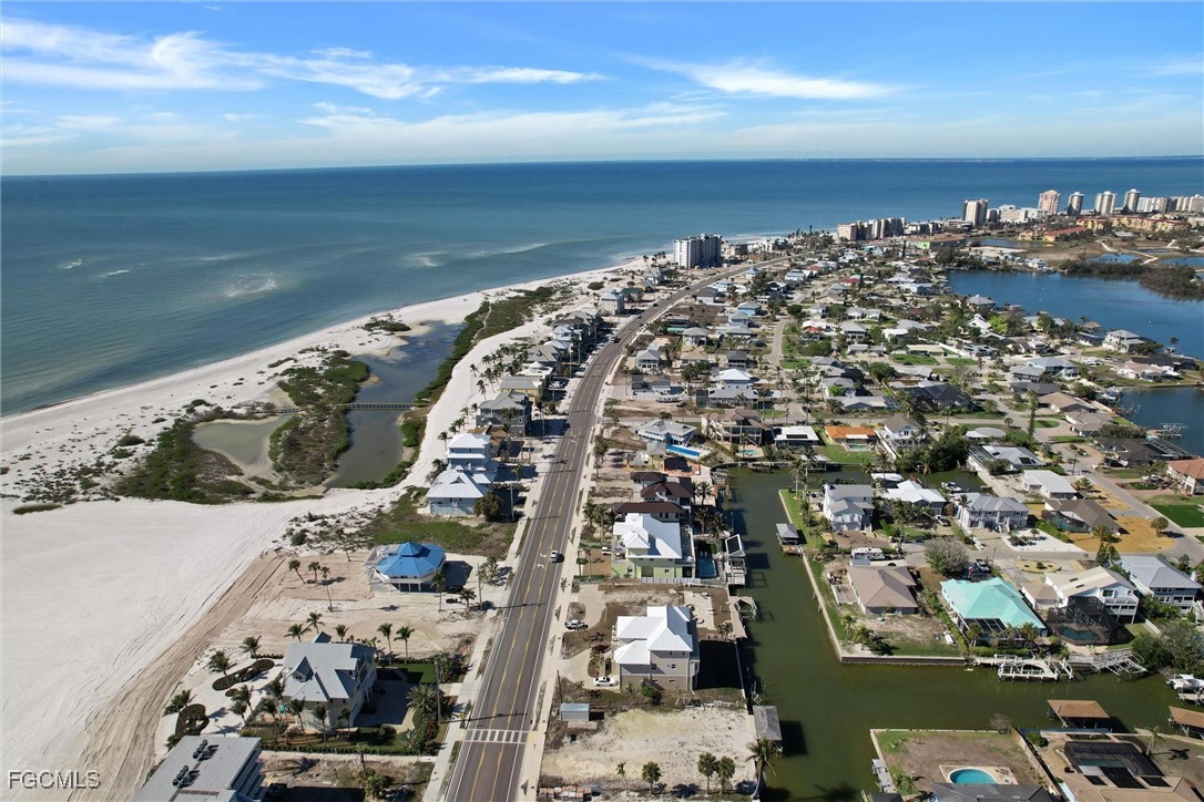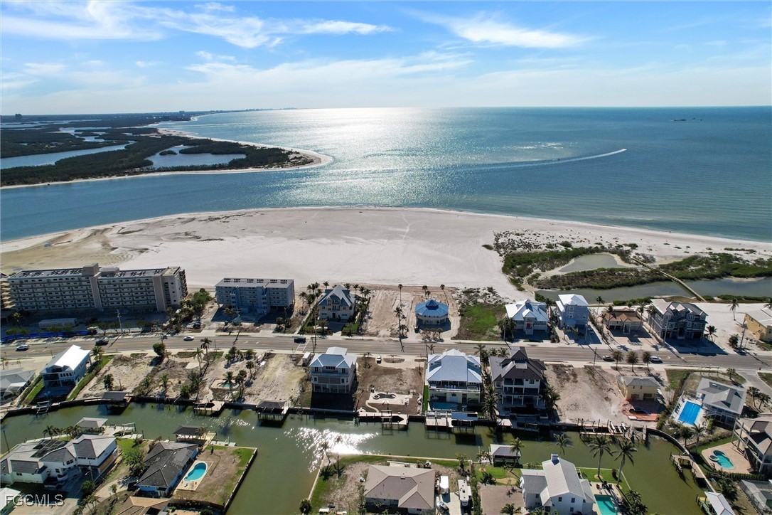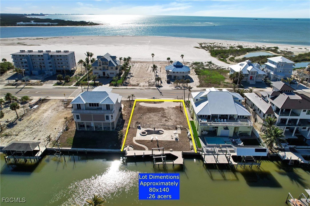 Located in the quaint boating community of Laguna Shores, situated at the southern tip of Fort Myers Beach, this property offers convenient Gulf access. A mere five-minute boat ride through Estero Bay from the dock to the Gulf renders this location ideal. As a property owner, you will have the opportunity to witness breathtaking sunsets daily. This exceptional canal and beachfront lot is fully prepared, utilities are operational, and engineering plans are readily available, along with introductions to builders if desired. Furthermore, a boat dock equipped with a 14,000-pound lift is available for your current or future vessel. For those who prefer not to venture out on the water, deeded beach access is directly across the boulevard. This lot is primed and ready for you to construct your dream island residence. All while enjoying a day of boating, beaches, and sunsets. Nearby amenities include golf, tennis, boat rentals, fishing, jet skiing, kayaking, the Key West high-speed ferry, shopping, and island clubs and eateries. Additionally, you have convenient access off the island to the world-class amenities of Naples, Bonita Springs, Estero, and Fort Myers. A quick 30-minute drive to RSW and a 45-minute drive to Punta Gorda.