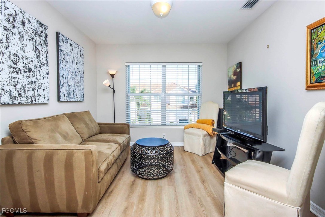 Nestled in the charming community of Majestic Palms with over 1600 square feet under air, this 2 + den with two full baths and attached single garage waits for you. This outstanding top floor property is bright and open with volume ceilings and plenty of natural light throughout. Located in the highly popular McGregor corridor within minutes to Sanibel and the beaches plus easy access to RSW, restaurants and shopping. Sabal Pointe received fresh exterior paint, and a new roof in 2024 and is fully insured. Amenities include a community pool, clubhouse, spa and gas grills.