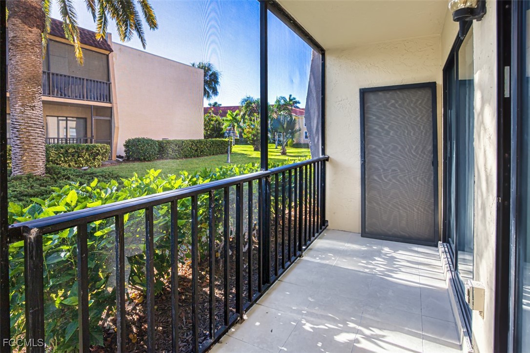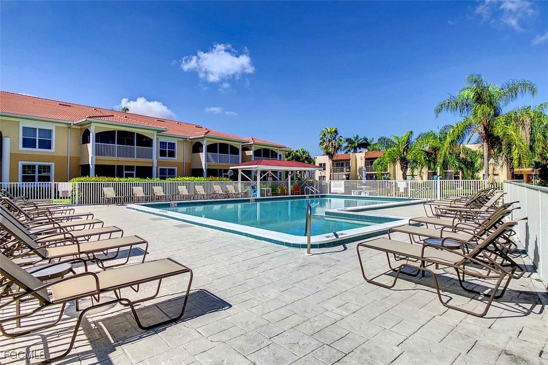 The large screened in lanai extends your living space year-round with double sliding glass doors from the living room and the master bedroom. A peaceful spot to enjoy your morning coffee amid the setbacks in this quaint community. Both bedrooms are generously sized; the primary suite offers two closets and a large laundry room in an en-suite bath with step-in shower with articulating shower head. The second bedroom situated in a split layout provides a large window, closet space and easy access to the hall bath with shower over the tub. Additional comforts include, storm/screen door, 3 ceiling fans, in-unit laundry, tile flooring throughout, and fresh neutral finishes ready for your personal touch. Step outside to enjoy your private patio, two assigned parking spaces, and beautifully landscaped surroundings. The community pool with large pool deck creates an inviting environment for year-round or seasonal living. Maple Gardens has cement and block construction for a quiet interior environment, it has a brand-new roof (2024), pet permitted with restrictions, no age restrictions, and a low-maintenance lifestyle with fees covering lawn care, water, and exterior maintenance. Unit #12 had the ceiling recently scraped and the unit painted after a leak from the unit above was repaired. Whether you’re seeking a full-time residence, winter escape, or investment opportunity, Unit #12 at Maple Gardens offers the perfect blend of comfort, convenience, and carefree Southwest Florida living!