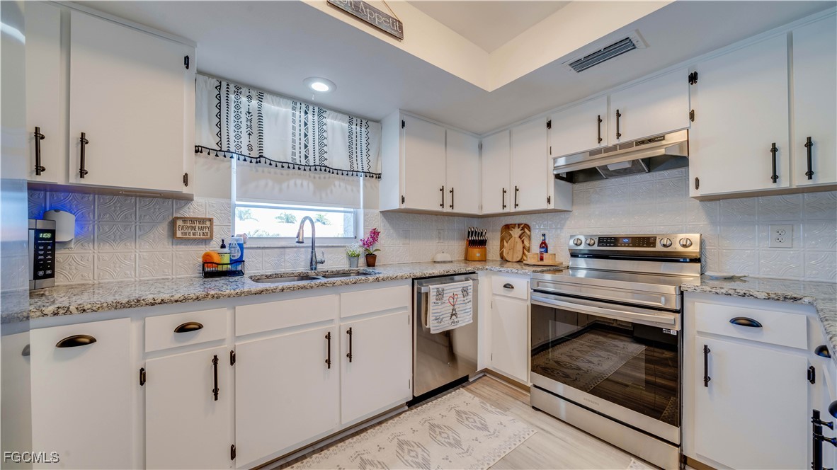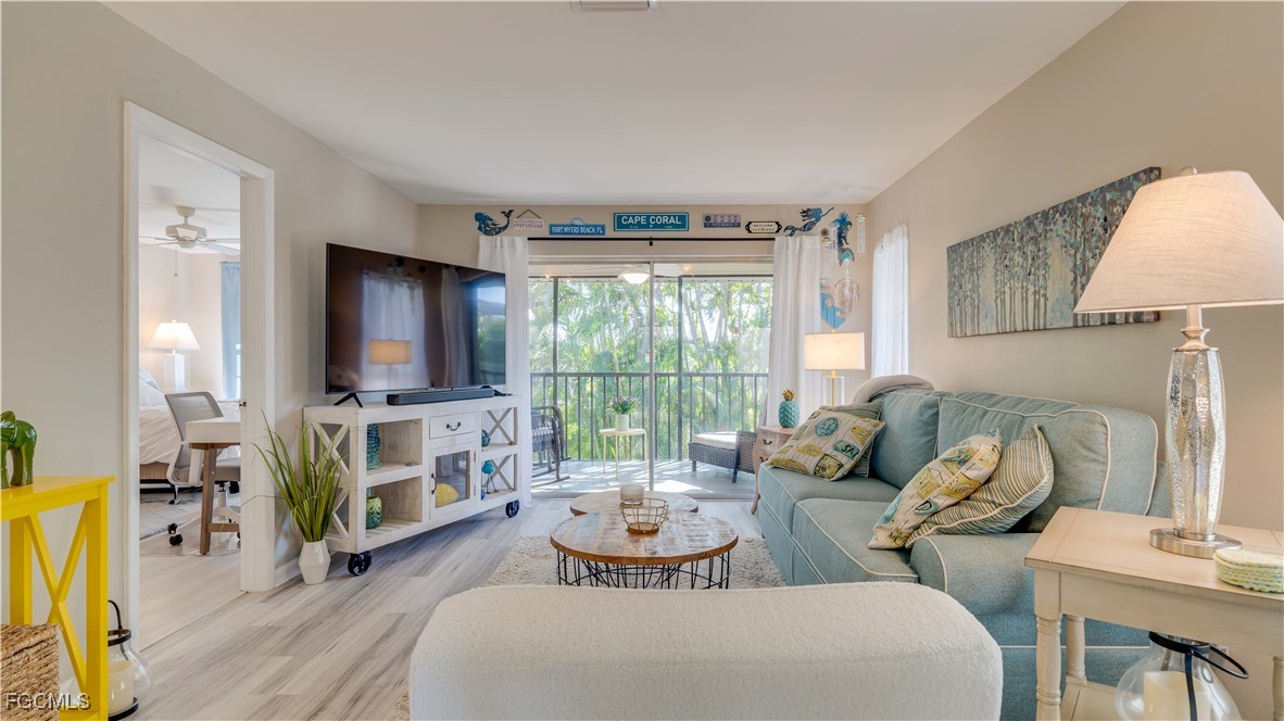 Stunning condo within walking distance to the newly revisioned Jaycee Park where you can enjoy walking your dog, meeting friends and breathtaking sunrise views over the river. This beautiful home is being sold with all its newer light and tasteful furnishings. Close to downtown with all its restaurants, shopping and entertainment options. This 2 bedroom, 2 bath condo features luxury vinyl plank flooring throughout the condo, no carpet anywhere. Private screened lanai with sliders from living room and owner's suite overlook a lush landscape area. The washer and dryer are in the unit. Veranda condo includes a private resident's pool in a tropical setting. A storage unit is located right outside your front door. Small pets are welcome.