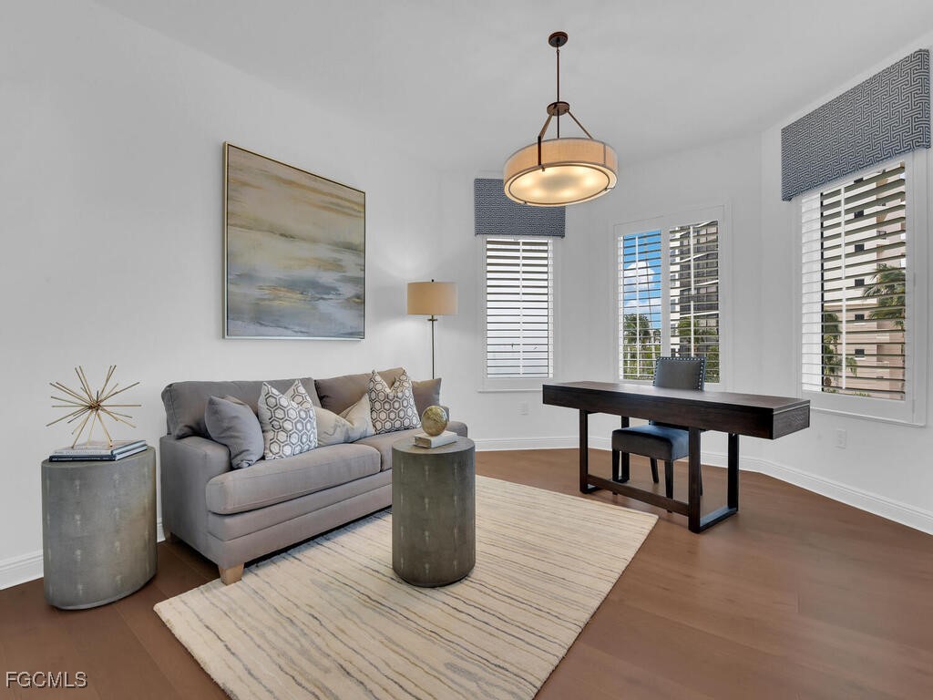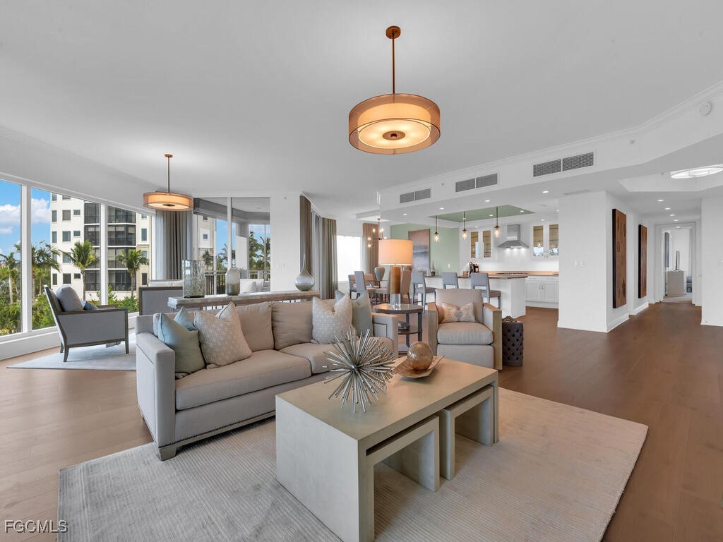 Experience Elevated Luxury Living with Unmatched Views. Welcome to an extraordinary residence where elegance, comfort, and sophistication converge. This professionally furnished, turnkey 3-bedroom + den, 3.5-bathroom home offers an elevated lifestyle in every sense—beginning with your private elevator that opens to a grand foyer, setting the tone for refined living. Designed for both relaxation and entertaining, the expansive open-concept floor plan is complemented by a stunning western exposure, offering sweeping sunset views over a tranquil lake, the lush greens of the golf course, and out toward Estero Bay and Fort Myers Beach. Walls of glass invite the outdoors in, while high-end finishes and curated furnishings elevate every room. The gourmet kitchen is a chef’s dream, top-of-the-line appliances, featuring a gas cooktop, wall oven, custom cabinetry, a spacious quartz island and a generous walk-in pantry making it ideal for culinary enthusiasts. An elegant wet bar enhances the entertainment experience, while the spacious living and dining areas seamlessly flow onto the large private terrace—perfect for sunset cocktails or morning coffee with panoramic vistas. The Master suite is a serene retreat with direct lanai access, a luxurious master bath with a soaking tub, walk-in shower, dual vanities, and a spacious walk-in closets. Two additional bedrooms, both with en-suite bath, provide comfort and privacy for family or guests. Additional features include a den for work or relaxation, and custom designer touches throughout. Unit #304 includes two enclosed covered garage spaces for secure parking, as well as impact-resistant windows and doors for added safety and peace of mind. Every detail has been thoughtfully considered to provide a high-end, move-in-ready lifestyle. Indulge in luxury living where every amenity and breathtaking view is just an elevator ride away. Residents of Altaira at The Colony have access to a range of luxury amenities, including 24-hour concierge service, an infinity-edge pool with cabanas, a state-of-the-art fitness center, a rooftop observatory, three guest suites, and a 3,000-square-foot social room. This exclusive community also offers a private 34-acre island beach park with boat shuttle service, pickleball and tennis courts, sailing, bocce, and a variety of social activities. Conveniently located near world-class shopping, dining, entertainment, and Southwest Florida International Airport, this residence presents a rare opportunity to own a piece of paradise in one of Southwest Florida's most sought-after communities. With its exceptional design, breathtaking views, and unparalleled amenities, this home is truly a must-see.