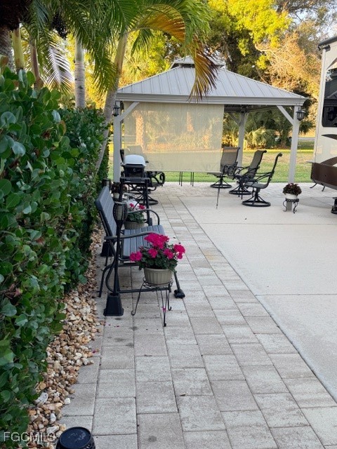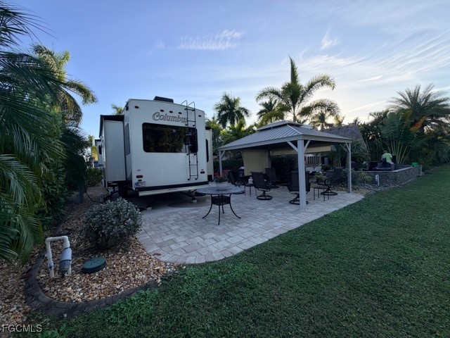 Lot 388 is a concrete south facing back in lot that can accommodate any type of RV. It sits on a quiet street called prairie Iris trl, In Cypress Trail RV Resort. The side yard and the back patio area is paved with neutral colored pavers. Some of the plantings on this lot are Sylvester Palms, Sago palm, Holly, Manila palm and some cocoa plums for privacy. There is a 12 x 14‘ metal gazebo complete with some crank down shades for more privacy, a ceiling fan and patio lights surround the ceiling area. This has survived two hurricanes so is very stable. Also on the Lot is an Amazon 8 x 15‘ shed with a toilet and a sink. The rest of the shed is unfinished so you can custom finish it to your needs. Any storage of personal property property is very easy because you have twin double doors on the shed. The rear patio area offers even more relaxing space in a super large open green space to the north where there are no neighbors close by and the green space gives you an opportunity to walk your dog directly from this lot to the dog park. The lot is very convenient to the clubhouse for activities and is also right down the road to the garbage and recycling area. Don’t miss this very pleasant lot competitively priced. Call Jim at 920-948-2500 for additional information.