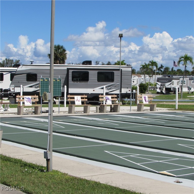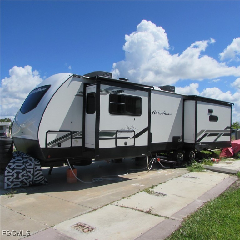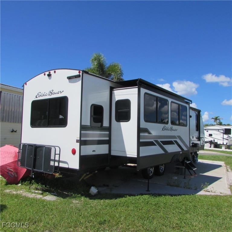 The sale of this great 36'x56' lot INCLUDES THE 37ft 2024 EDDIE BAUER SIGNATURE MODEL RV! Palmetto Palms RV Resort boasts lots of amenities including: 2 pools, tennis courts, pickleball courts, shuffleboard, community room, boat storage, and more! The great location is just minutes away from Fort Myers Beach and Sanibel Island. The beautiful RV is loaded with all of the bells and whistles that you would expect in this luxurious model. King sized bed, fireplace, leather recliner loveseat, well appointed kitchen, large shower, lots of storage space inside and out, integrated sound system with outside speakers, retractable awning, and a new 50 amp electric panel. This beautiful RV located close to all the glories of the local beaches and attractions is waiting for you to make it your home or vacation spot. Call today to schedule a showing.