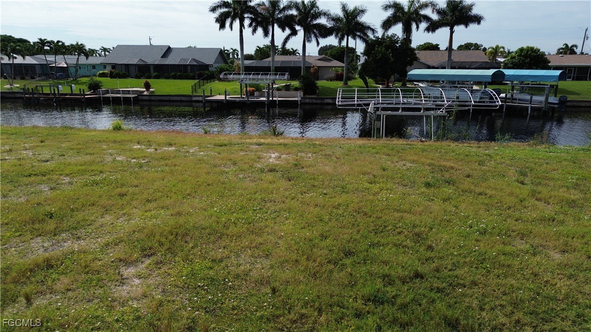 Introducing a truly exceptional opportunity in the heart of Cape Coral, Florida – a stunning triple lot oversized property boasting 120x146 dimensions, offering a sprawling 17,520 square feet of prime real estate. The canal is wide, over 100 feet, and already features a boat lift. Situated in one of Cape Coral's most coveted neighborhoods, this lot presents a rare chance to create your dream waterfront oasis in paradise. One of the standout features of this remarkable property is its excellent elevation, ensuring peace of mind and protection against flooding or storm surges. With southern exposure, you'll be treated to breathtaking sun-drenched days and spectacular sunsets, creating the perfect backdrop for outdoor living and entertaining. What sets this property apart even further is its peace of mind regarding assessments and impact fees. All assessments have been fully paid, alleviating any additional financial burdens for the new owner. Additionally, a new seawall was constructed 20 days ago, providing added value, security, and longevity to the property's waterfront infrastructure. Imagine waking up to the gentle lapping of the water against your private shoreline, basking in the warmth of the Florida sun as you sip your morning coffee on your future lanai. Envision evenings gathered around a fire pit, sharing stories and laughter under a star-studded sky. With this exceptional lot as your canvas, the possibilities are truly endless. Whether you're seeking to build your dream waterfront home, invest in prime real estate, or secure a piece of paradise for future enjoyment, this triple lot in Cape Coral offers an unparalleled opportunity to turn your vision into reality.