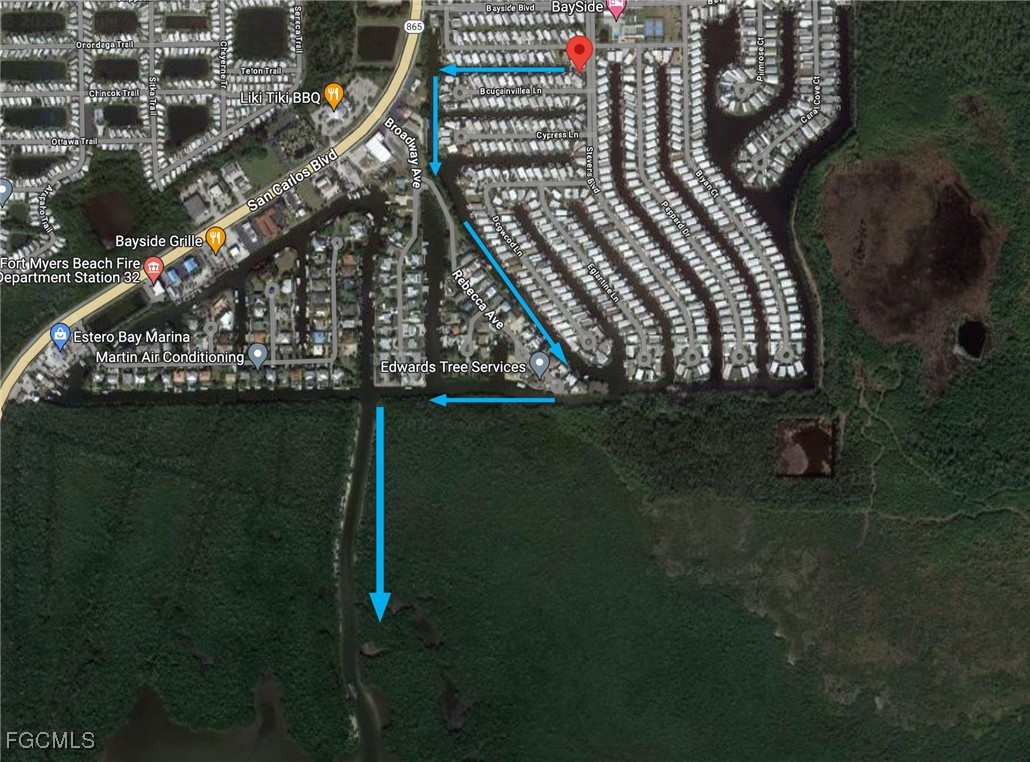 Ready to build your dream coastal home with direct access to the Gulf of Mexico? The west-facing rear exposure offers gorgeous sunset views right down the canal—an ideal backdrop for enjoying evenings outdoors. The lot features generous dimensions of 85’ (front), 102’ (left), 80’ (right), and 22’ (rear). A composite dock and boat lift are already in place, saving you the significant cost of installing new waterfront improvements. The newer seawall in 2006 provides peace of mind, and the original pavers were preserved on the back patio, offering both charm and added value without any extra expense. Just a short boat ride, or bike ride to FMB. Bayside Estates is a sought-after 55+ boating community close to everything that's fun in the sun. This parcel is across Amenities include, Bocce court, Clubhouse, Community pool, Community room, Exercise room, Internet access, Library, Pickleball, Shuffleboard, Sidewalk, Tennis Court, Underground utility. Maintenance includes, Internet, Irrigation, Lawn/Land, Manager, Rec Facilities, Sewer, Street lights, Trash removal and water. HOA fees are $650 a quarter. Buyers pay a $2600 capital contribution fee .