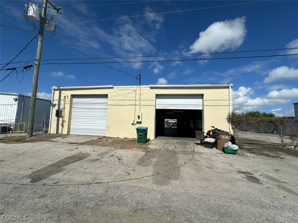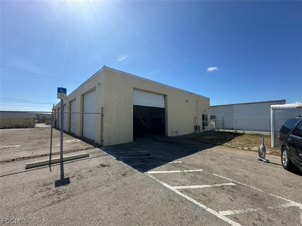 This light industrial zoned property in the heart of Cape Coral has been renovated since Ian including new TPO roof over the concrete existing roof. 4,500 sf building, 2 remodeled offices with interior paint, ceramic tile floor, 2 remodeled restrooms. Has a separate bay on the alley for painting (no longer certified), a fire sprinklers and a hazardous material storage room. 3 phase power, fully paved and fenced lot to the east of the building allowing room for additional parking or outside storage. NOT IN A FLOOD ZONE, 8 OHD. Offered at $22 SF, CAM $4.05 SF