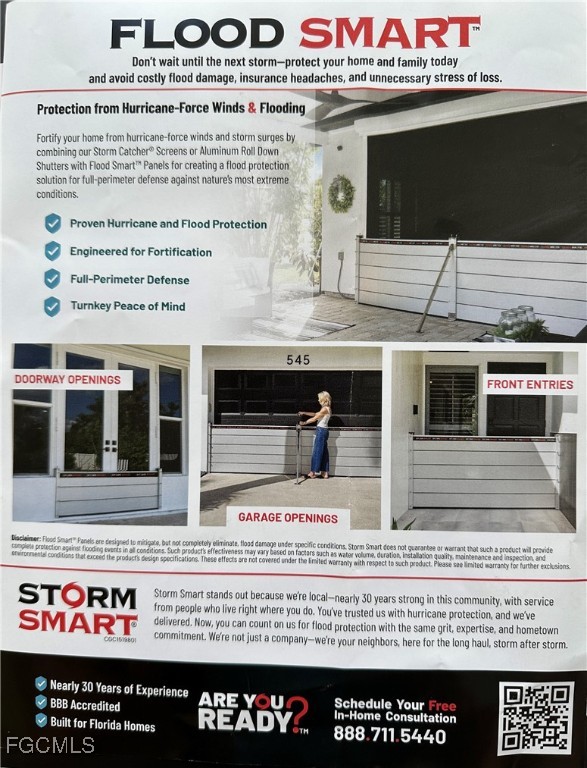 For your peace of mind, the home features impact windows and doors, and newly installed (September, 2025) engineered flood gates to protect the home from future flooding. The photos include a snap of the flood gates on the front door and garage door. The flood gates are designed to protect the home from flooding just beyond the watermark made by Ian. All of the televisions will convey with the sale!