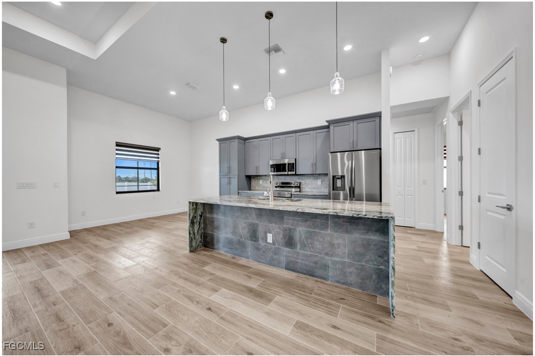 This beautifully designed 3-bedroom with Den, 3-bathroom home includes two primary suites with walk-in closets and frameless glass showers, plus a versatile den that can serve as a 4th bedroom or office. The gourmet kitchen features a large island, stainless steel appliances, and solid wood cabinetry with granite countertops.