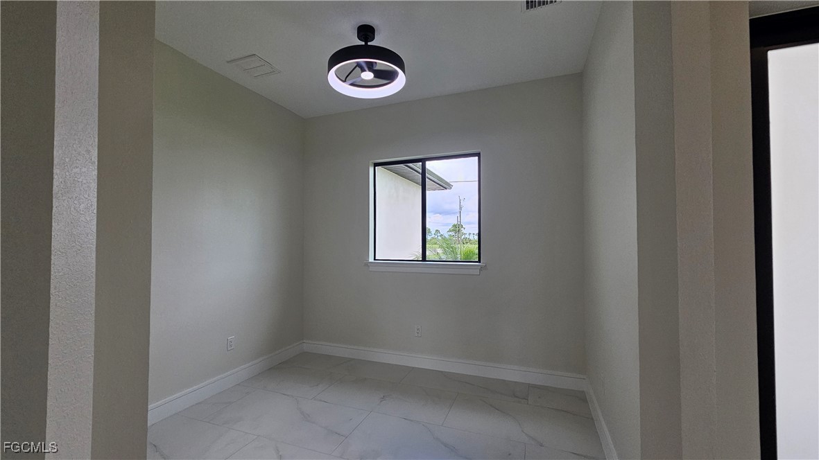 The spacious primary suite includes tray ceilings, dual walk-in closets, and a spa-style bathroom with a floating vanity, soaking tub, and oversized walk-through shower. Guest rooms share a bath with lanai access, ideal for a future pool.