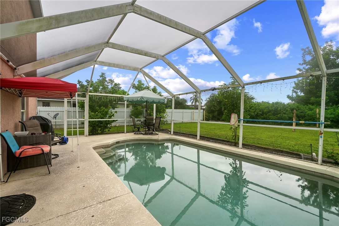 Outside leads to a large fenced backyard, offering privacy and room to enjoy outdoor activities, gatherings, or simply relaxing by the pool.