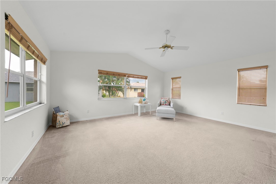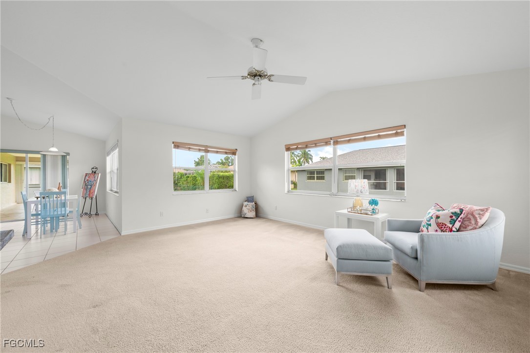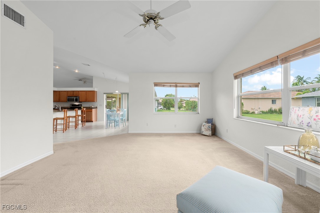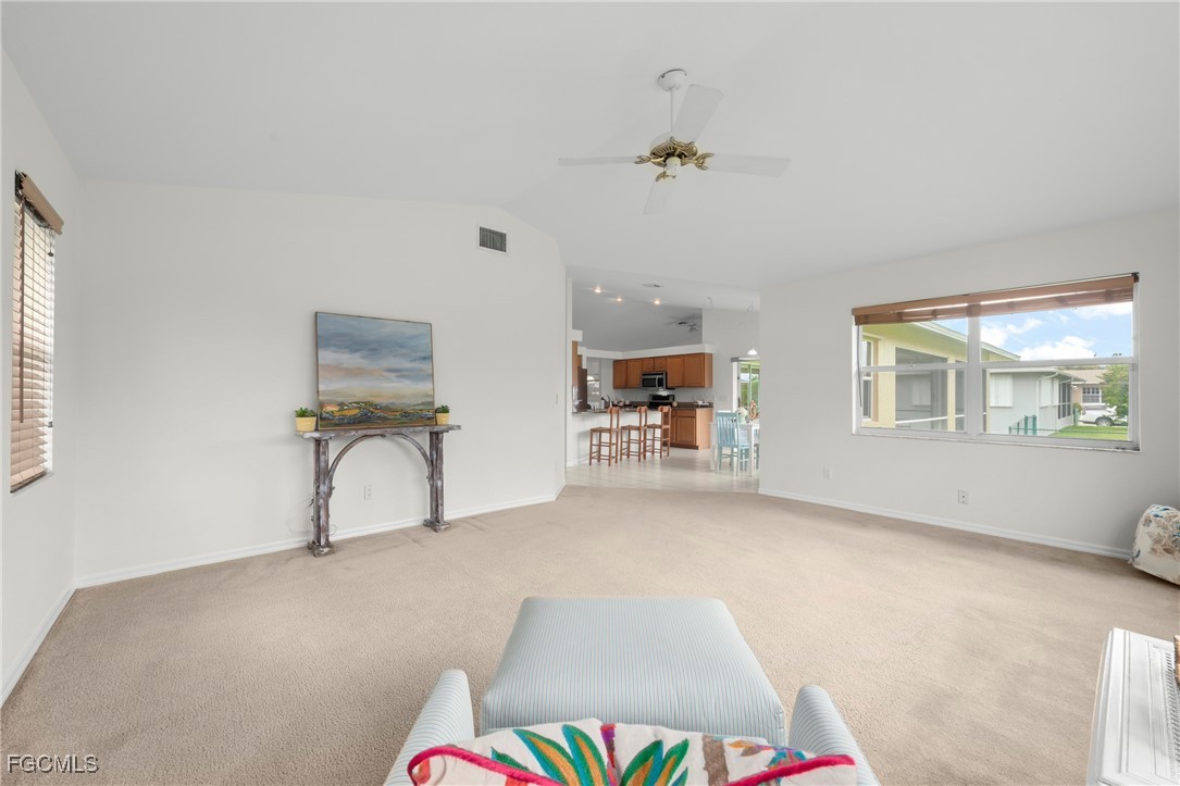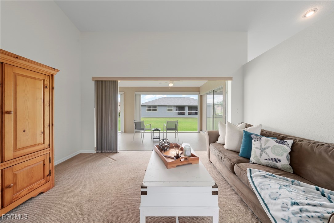 Vaulted ceilings, triple-panel sliders, and a lanai designed for Florida sunshine living—welcome to 8886 Staghorn Way in the desirable Fernwalk community. This 4-Bedroom residence spans over 2,400 sq. ft., offering a thoughtful mix of open gathering areas and private retreats. A double-door entry with decorative fanlight windows, pendant fixture, bullnose corners, and architectural pony wall sets the stage. Inside, neutral tones and recessed lighting create an inviting canvas. Hardwood, tile, and carpet add texture and comfort throughout. The kitchen is the hub of the home, featuring rich cabinetry, a breakfast bar, walk-in pantry, and eat-in nook. The living room opens effortlessly to the screened lanai through triple-panel sliders, creating the perfect setting for entertaining or relaxing. The split-bedroom floor plan provides privacy, highlighted by a spacious primary suite with dual walk-in closets, spa-style bath with dual sinks, soaking garden tub, separate shower, private water closet, and an arched transom window that fills the space with natural light. A front room with arched windows offers versatility for use as a den, office, or formal dining. Fernwalk is an established neighborhood of just 68 homes. Amenities include a pool and cabana, tennis, bocce, volleyball, and basketball, along with sidewalks throughout the community. An extended sidewalk along Winkler connects directly to Summerlin Road’s bike path for walking, jogging, or biking. Centrally located in South Fort Myers, this address is minutes to Sanibel, Fort Myers Beach, shopping, dining, airports, and interstates—an ideal balance of comfort and convenience.