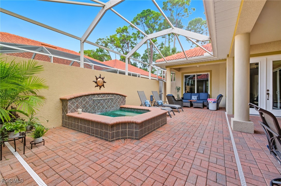 Beautifully maintained Courtyard-Style home including a separate casita awaits its new owner! Furnishings are optional if the buyer prefers. With over 2700 square feet, natural light, a heated spa, four bedrooms, and four and a half baths, there is room for everyone! Beyond your doorstep, the Bell Tower Park community provides exceptional amenities. You'll have access to two resort-style pools, two hot tubs, a fitness center, pickle ball courts, a basketball court, and tennis courts. Enjoy the outdoors with direct access to the Six Mile John Yarbrough Linear Park Trail, perfect for avid bikers and walkers. This courtyard home is situated in one of Fort Myers' most convenient locations, offering quick access to a variety of shopping, dining, and entertainment options. It is also just a short drive from RSW International Airport and the area's world-famous beaches. This community also includes high speed fiber-optic internet, 200+ TV & music.