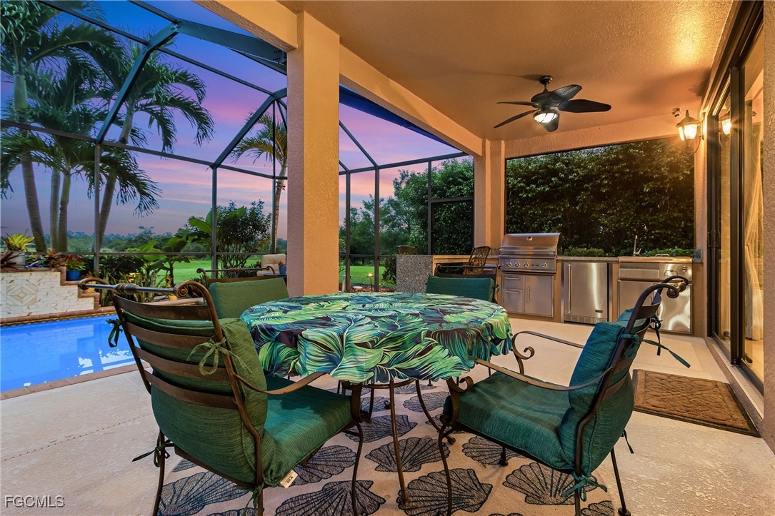 The spacious primary suite has a walk-in closet, a spa-like bath with a double vanity, a jacuzzi tub, with a separate walk-in shower. Many upgrades, including A/C 2023, outdoor kitchen 2021, outdoor lighting 2023, pool auto water filler, and pool skimmer 2024. Low HOA @ $178/mo. The Club at Gateway is optional with a 5+ Million Dollar renovation offering social, sport, or golf memberships. Tree-lined streets, restaurants, a brewery, a farmers' market, and Houses of Worship are all within the Gateway community. Daniels’s Preserve is minutes to I-75, RSW Airport, restaurants, shopping, and JetBlue Boston Red Socks spring training stadium. This GEM is priced to sell.