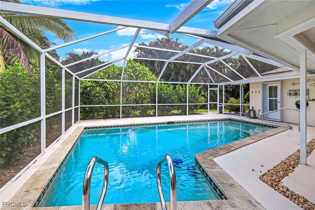 Experience the best of Whiskey Creek living in this spacious 4-bedroom, 3-bath pool home, ideally located in the heart of Fort Myers. Situated in one of the area’s most desirable neighborhoods, this beautifully maintained residence offers a bright, open layout that’s perfect for both everyday living and effortless entertaining. Step outside to your private tropical retreat—complete with a solar heated pool & screened lanai. Expansive sliding glass doors and vaulted ceilings in the living areas create a seamless flow between indoor and outdoor spaces, inviting abundant natural light and fresh air throughout the home. Recent updates include a new pool pump (2023), solar panels (2023), and fresh interior and exterior paint—making this home move-in ready. Whiskey Creek is known for its welcoming community feel and features its own golf course and clubhouse, offering a relaxed, resort-style lifestyle with no mandatory HOA fees. The property is not in a flood zone, has no rental restrictions, and does not require pet approval. Enjoy unbeatable convenience just minutes from shopping, dining, beaches, RSW airport, and historic downtown Fort Myers.
