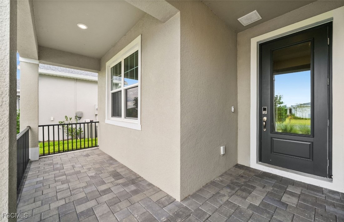 community of Babcock Ranch. This home features an open floor plan, with a bright foyer and a striking glass