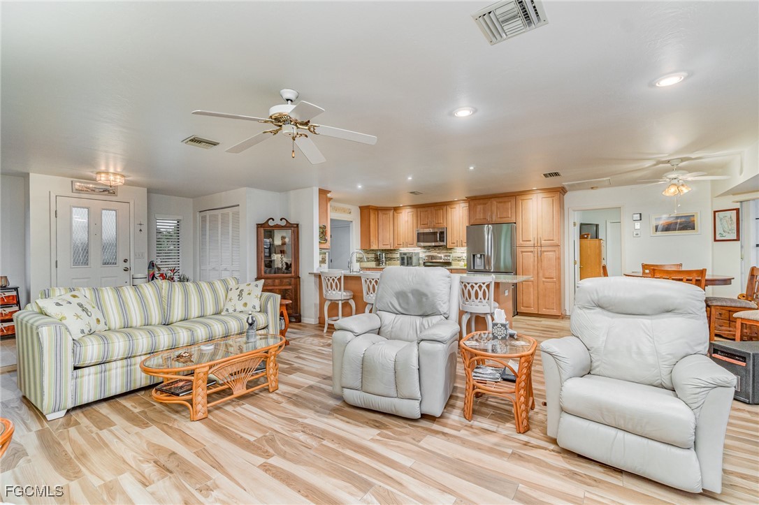 STUNNING WATERFRONT RETREAT! This 3 Bedroom, 2 Bathroom, 2 Car Garage POOL HOME offers 50 feet of water frontage and is just minutes to open water — all perfectly situated on an oversized corner lot in desirable St. James City. CLICK VIRTUAL TOUR LINK 1 for the property video and VIRTUAL TOUR LINK 2 for the interactive 3D walkthrough. Step inside to a bright, open floor plan with tile flooring in the main living areas, recessed lighting, and panoramic water views that immediately set the tone for relaxed coastal living. The living and dining areas flow seamlessly to a large glass slider overlooking the canal — the perfect backdrop for entertaining friends and family. The chef’s kitchen boasts stainless steel appliances including a double oven and new dishwasher, Cambria Quartz countertops, tiled backsplash, a cabinet pantry, and soft-close cabinetry with pullouts for effortless storage. Enjoy casual meals in the waterside dinette framed by oversized windows. The spacious primary suite features serene water views, direct lanai access, a walk-in closet, and a private bath with dual sinks and a walk-in shower. Two guest bedrooms on a split floor plan offer comfort and privacy with built-in closets and a nearby guest bath. Extend your living space outdoors! The expansive screened lanai wraps around the side of the home, opening to your sparkling pool and oversized pool deck — the ultimate oasis for lounging, entertaining, and soaking in the Florida sunshine. A private dock with a 10,000lb boat lift makes it easy to launch into endless boating and fishing adventures. UPDATES & FEATURES: 2023 Roof | 2020 HVAC | 2023 Water Heater | 2025 Pool Pump | 2023 Pool Cage | Home wired for generator | Extra-high garage ceilings ideal for raised storage or a car lift. Nestled in the heart of St. James City, this home offers the perfect blend of small-town charm and vibrant boating lifestyle. Explore local seafood restaurants, boutique shops, and water-based activities right at your doorstep — or set out to discover Pine Island, Sanibel, and Captiva’s world-famous beaches. Don’t miss this opportunity to own your slice of paradise — schedule your private showing TODAY!