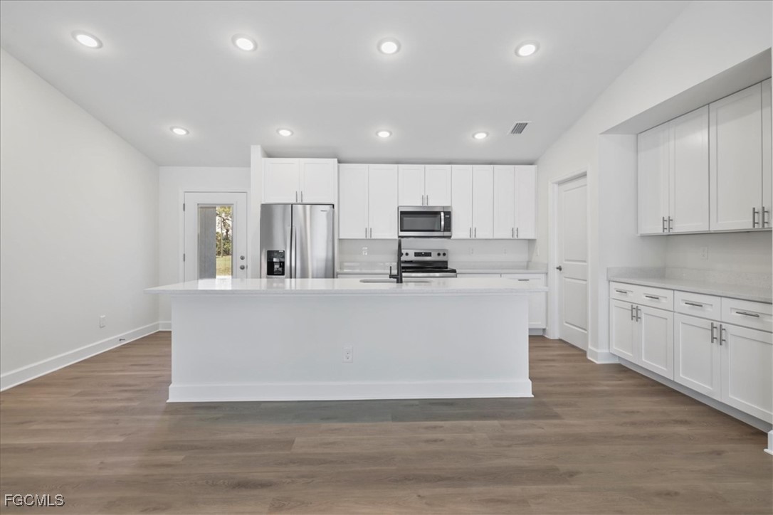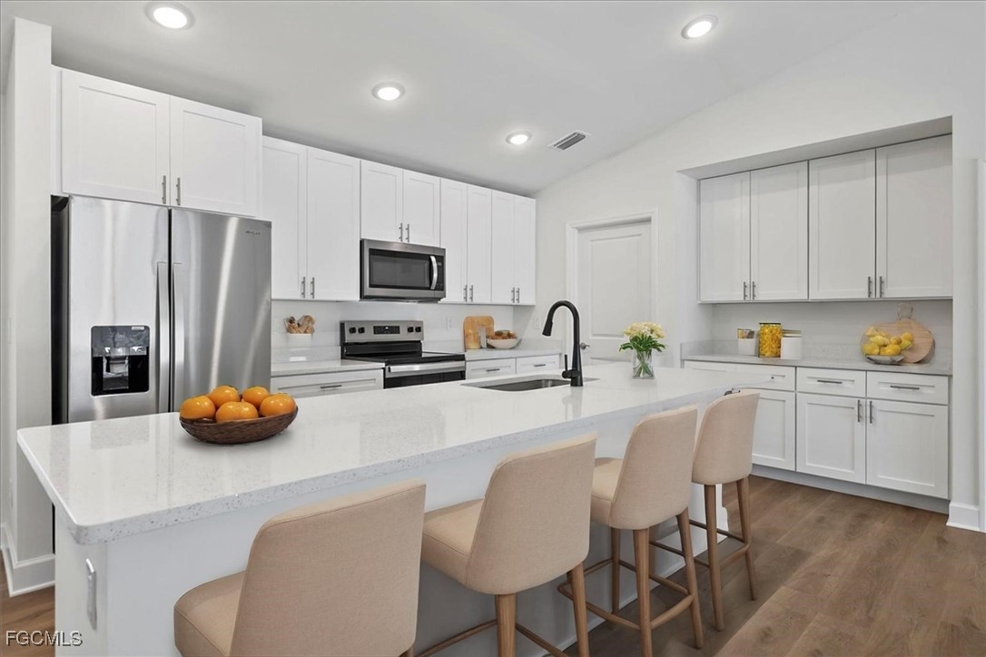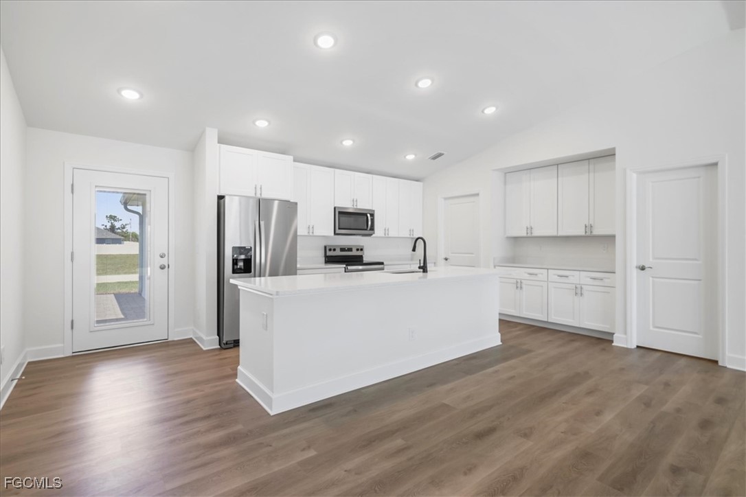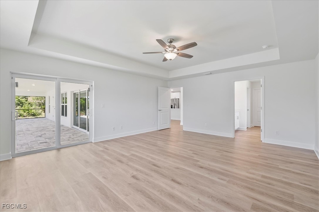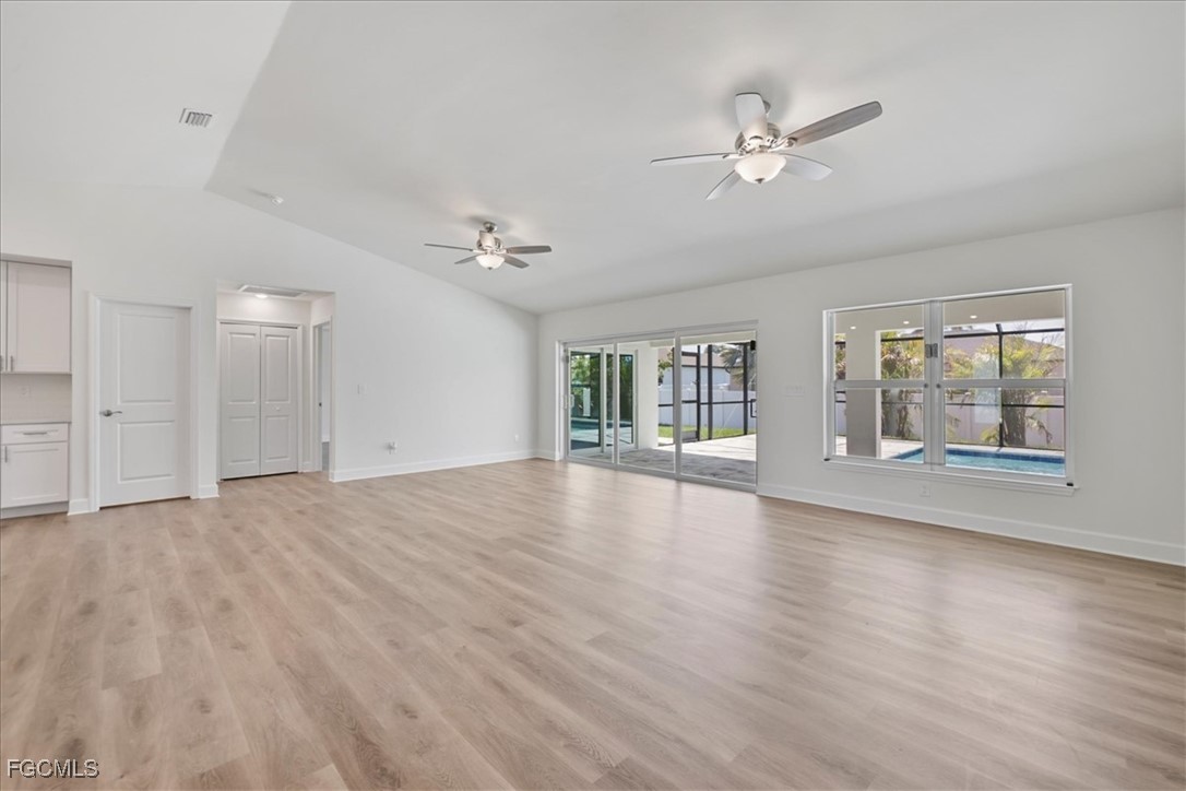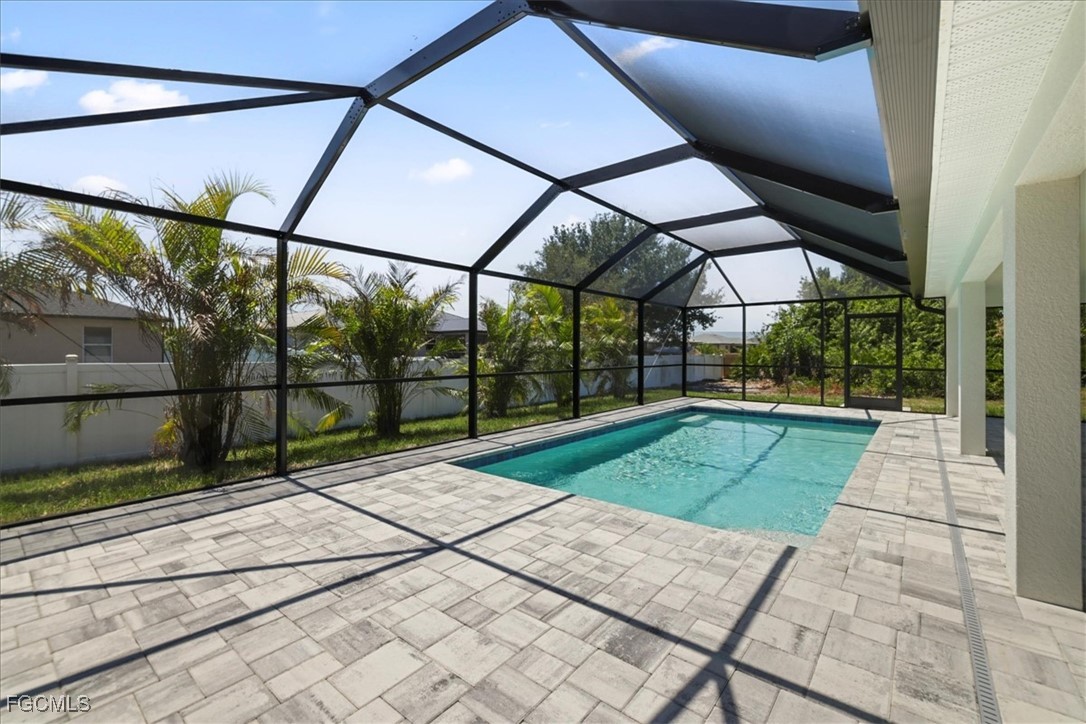 HUGE TRIPLE LOT WITH PLENTY OF ROOM FOR BOATS AND TOYS! SPACIOUS POOL HOME WITH DUAL PRIMARY SUITES! Welcome to the Paradise Cove Plan—a stunning, expansive retreat designed for comfort and elegance! This huge 4-bedroom, 3-bath home boasts two luxurious primary suites, making it perfect for multi-generational living or accommodating guests in style. Step inside to discover an open-concept great room with soaring ceilings and a 12-foot triple slider, seamlessly blending indoor and outdoor living. The heart of the home is the gourmet kitchen, featuring soft-close, all-wood cabinetry, quartz countertops, stainless steel appliances, and an oversized walk-in pantry—a dream for any chef! The first primary suite is a private oasis, spacious enough for a king-size bed and a cozy seating area. Enjoy direct access to the lanai and pool, plus a spa-inspired ensuite with a freestanding soaking tub and separate shower. The second primary suite is equally impressive, offering a full bath that also serves as a convenient pool bath, along with a generous walk-in closet. Outside, relax in the 1,100 sq. ft. under-truss screened lanai or take a dip in the heated pool, perfect for year-round enjoyment. Built by a trusted local builder, this home offers incredible value in Cape Coral with impact windows for added security and lower insurance costs, no flood zone offering peace of mind and savings, and a 10-year structural warranty for long-term confidence. Fence options available—ask for details! This is The Paradise Cove Plan.