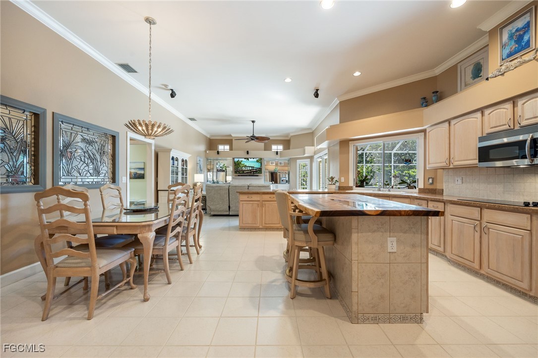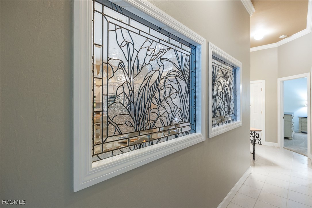 This charming, impeccably maintained home is a dream come true. Located in the well sought after Tarpon Point area on a quiet cul-de-sac lined with Royal Palms. The eastern rear exposure offers beautifully lit sunrise mornings while the stained glass front offers curb appeal that must be seen to be fully appreciated. A circular paver driveway shows off mature landscaping and in the evening professional landscape lighting accentuates the front pathway. The backyard gives the feeling of a private, tropical getaway. An in ground heated pool is finished in pebble-technology featuring semi-precious stones of onyx, red and green jasper and mother of pearl to name a few. The enclosed lanai is large with plenty of lighting, 2 fans and a wood finished ceiling, the perfect place for entertaining. One unbelievable multi- use outdoor covered space is located next to the pool partitioned by tall sliding glass doors. Inside this split-plan 4 bedroom 3 bath home you’ll find 11 foot ceilings, and crown molding throughout . The owners on-suite has 2 walk in closets while the bathroom features a tub and shower with rich brown cabinets, a chandelier and the elegant stained glass window also seen from the front of the home. The kitchen exhibits a live-edge lighted center island, stainless steel appliances and two clear lead glass windows each with mirrored herons separating the hallway leading to 3 bedrooms one bedroom is a den/bedroom with builtin office cabinets and a guest bathroom. The rear bedroom features a bathroom that also serves the pool area. This Home offers wonderful Florida Living, Its a must to see! Call me for a showing!