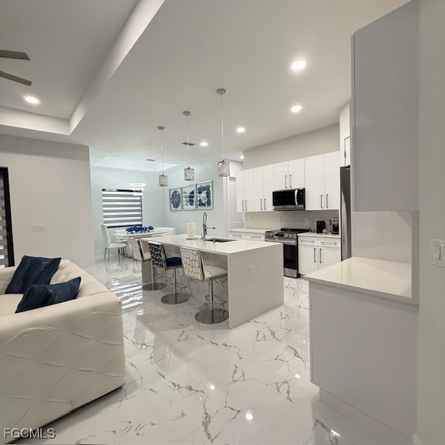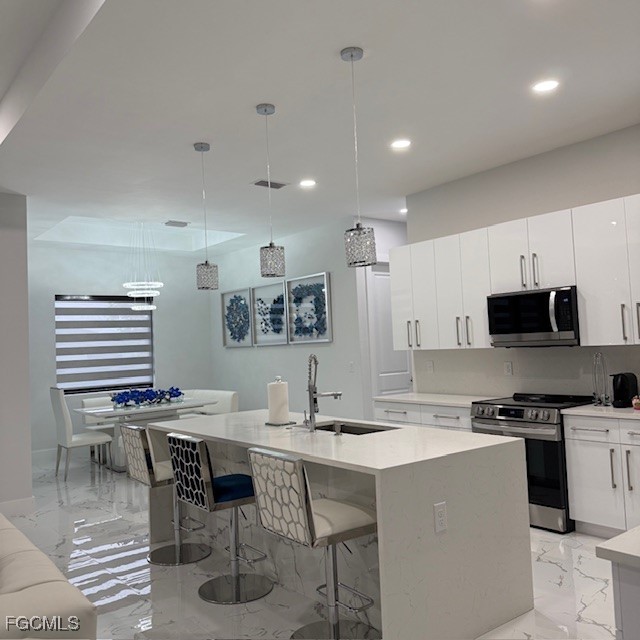 Modern kitchen with quartz countertops & stainless-steel appliances