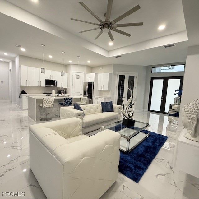 High ceilings & impact-resistant windows/doors for safety & energy efficiency