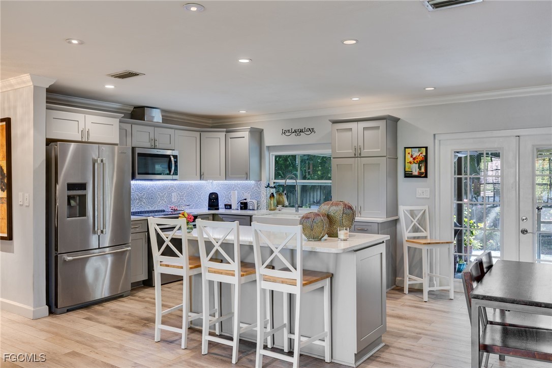 Welcome to this beautifully maintained pool home in the desirable Poinciana Village community, a safe neighborhood complete with sidewalks and a welcoming atmosphere. Perfectly situated in Naples, this residence offers convenient access to top-rated schools, shopping, dining, and all the best the area has to offer. Step inside and you’ll find elegant crown molding, a modern updated kitchen with quartz countertops, and stylish cork back vinyl flooring throughout. Outdoors, the property shines with its private pool and an impressive permaculture garden, designed to provide both beauty and sustainability. Enjoy harvesting from your own collection of fruit trees including banana, papaya, lemon, lime, mango, elderberry, wonder berry, peanut butter fruit, ruby red grapefruit, and shampoo ginger, along with a thriving vegetable garden. This unique combination of comfort, convenience, and natural abundance makes this home a rare find in one of Naples’ most sought-after neighborhoods.
