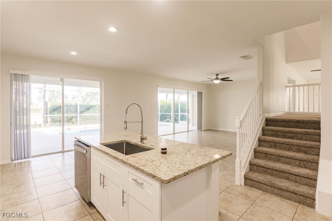 FANTASTIC REMODELED POOL HOME IN SANDOVAL AND WITH A FENCED YARD! SIMPLY A MUST SEE! Beautiful Remodeled Large Two Story Pool Available in Sandoval Community! The Following Features are NEW: Tile Roof, Interior and Exterior Paint, 5 Ton HVAC, Water Heater, Fixtures, Lighting, Cabinetry, Upstairs Carpeting, Pool Rescreen Etc. TWO Main Living Areas! Gorgeous Bright New Kitchen with White Cabinetry, Tile Backsplash, Granite Countertops, Stainless Appliances and Adjacent Dining Area. Lovely Remodeled Baths with New White Cabinetry and Quartz Countertops. Multiple Sliders lead to the Screened Lanai and Private Inground Pool! PLUS Fantastic Large Fenced Yard with Lake Views! 4 BRS Upstairs and 2 Full Baths. 1st FL Half Bath with Pool Access! Huge Main BR with Lovely Views! Large Main Closet off of the Main Bath. Main Bath with Dual Sinks, Tons of Counterspace, Large Shower, Garden Tub and Water Closet. Under Stair Storage Too! Brick Paver Drive and Walkway. Sandoval is a 524 Acre Lush Gated Community in the Heart of Cape Coral with Resort Style Pool, Water Park, Basketball, Sand Volleyball, Tennis, Fitness CTR. Close to Shops, Dining, Cape Royal Public Golf Course and Veterans Parkway. Quick Access to Fort Myers.