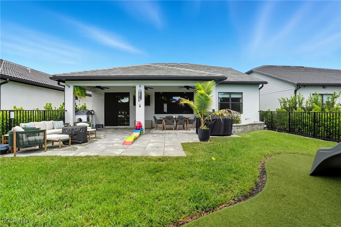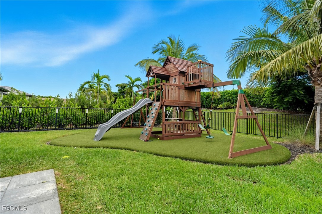 Outdoor living is just as impressive, featuring a fully fenced backyard with low-maintenance artificial turf and a built-in playground—a dream setup for kids and perfect for relaxing weekends.