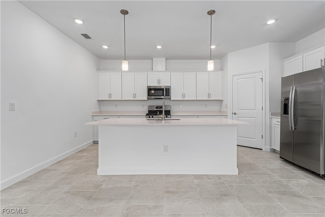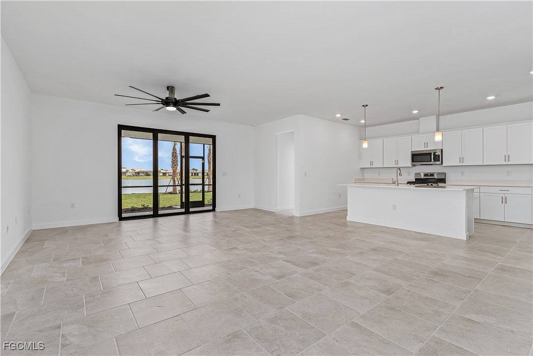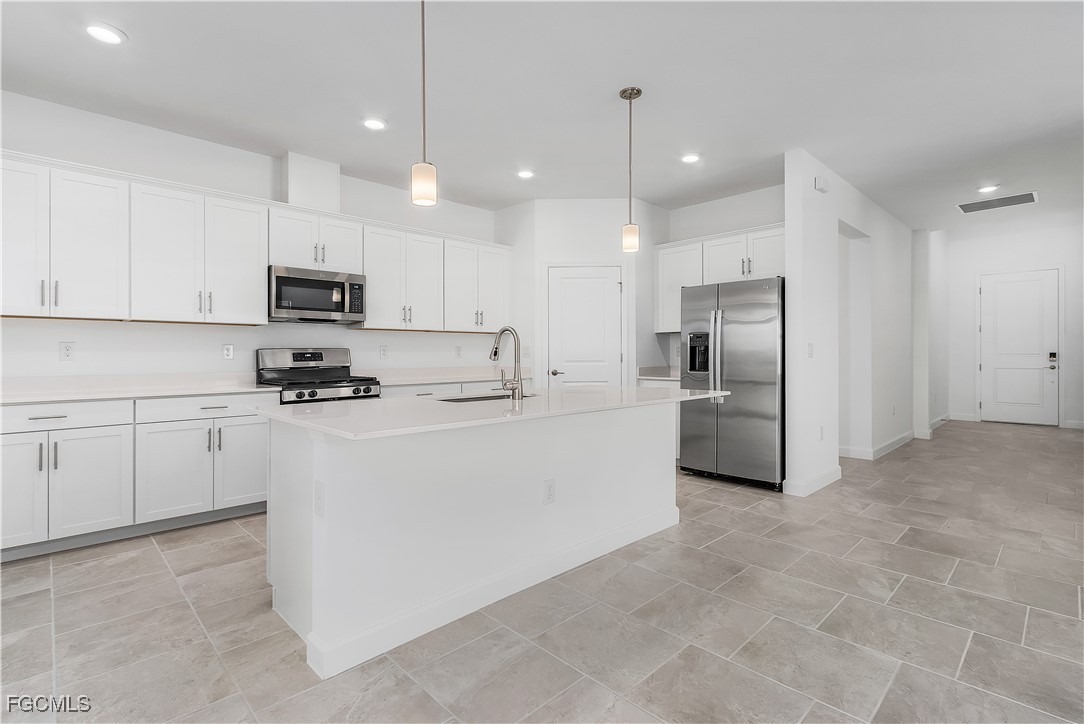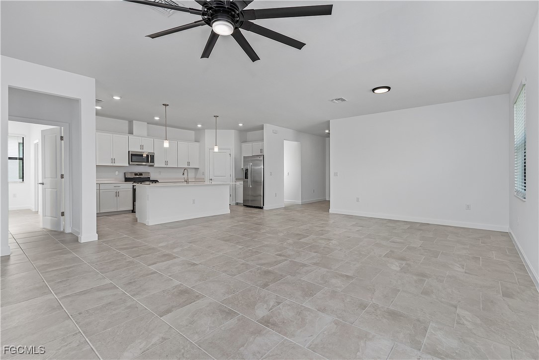 Experience modern Florida living in this stunning 4-bedroom, 3-bath home located in the highly sought-after Verdana Village community of Estero. Built with comfort and style in mind, this spacious residence spans over 2,000 square feet and showcases an inviting open-concept design perfect for both everyday living and entertaining. The heart of the home is the beautifully designed kitchen, complete with sleek cabinetry, quartz countertops, stainless steel appliances, and a generous island with bar seating. Flowing seamlessly into the living and dining areas, the layout is filled with natural light and offers plenty of room for gathering with family and friends.
