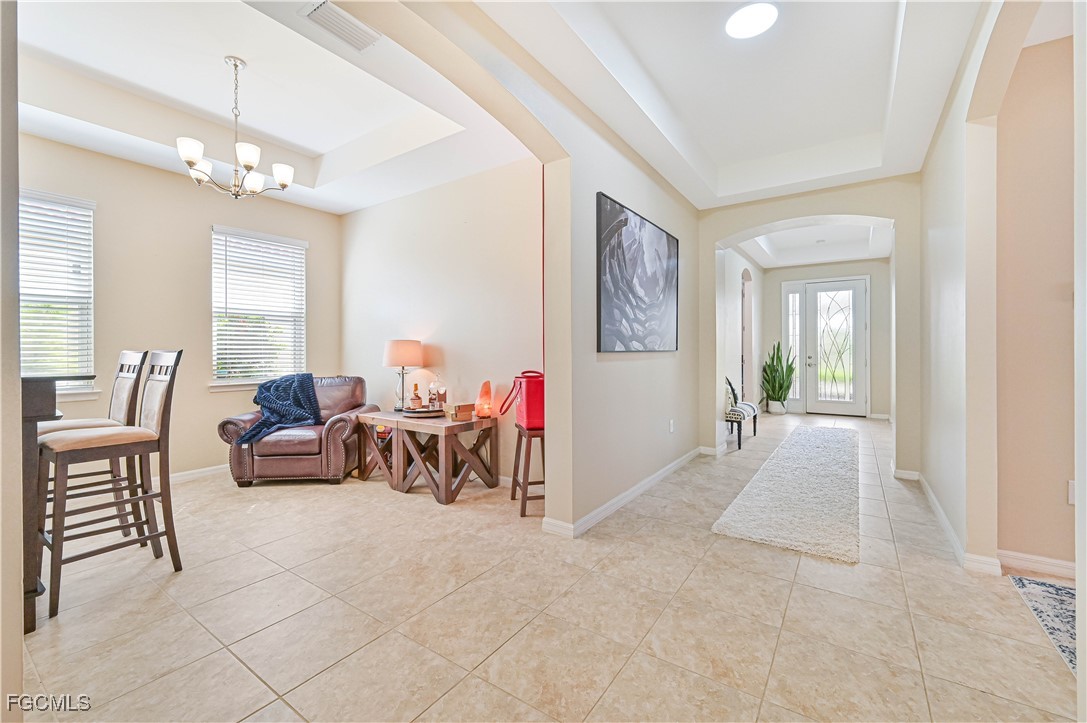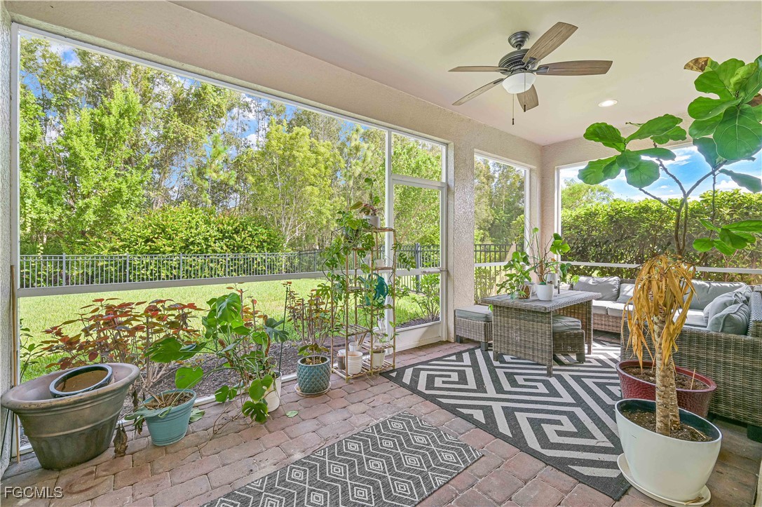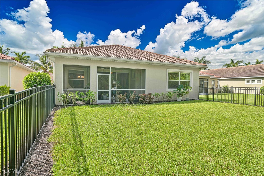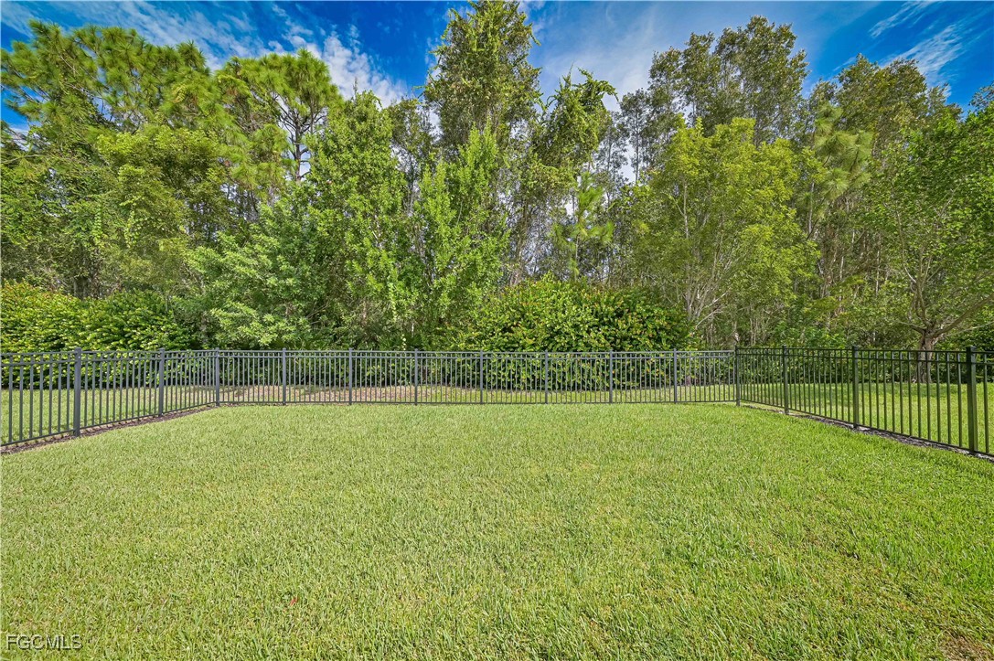 Welcome to this beautifully maintained 4-bedroom + den, 3.5-bath home featuring the highly sought-after Ashbury floorplan. From the moment you arrive, you’ll be impressed by the modern glass entry door that sets the tone for the stylish interior. Inside, enjoy the elegance of luxury plank vinyl flooring paired with tile in all the right places, creating a seamless and low-maintenance living space. Plantation blinds throughout add a timeless touch while offering privacy and light control. The open-concept layout provides spacious living and dining areas, ideal for entertaining or family gatherings. The versatile den makes a perfect home office, man cave, playroom, or formal dining. Step outside to a fully fenced-in yard that backs up to a private wooded view—your own tranquil retreat for morning coffee or weekend relaxation. There is a half bath on the lanai and the yard has plenty of room for a pool. Lindsford is a gated community is central Fort Myers close to shopping, restaurants, I75, RSW airport, spring training camps, and beaches. The community is gated with a resort style pool, fitness, tennis, basketball, clubhouse, and bocce. John Yarbough bike/jog trail runs right thru the neighborhood. Very low HOA fees that include lawn care. No Flood Insurance required. Don’t miss your chance to own this exceptional home that blends function, style, and privacy. Schedule your showing today!