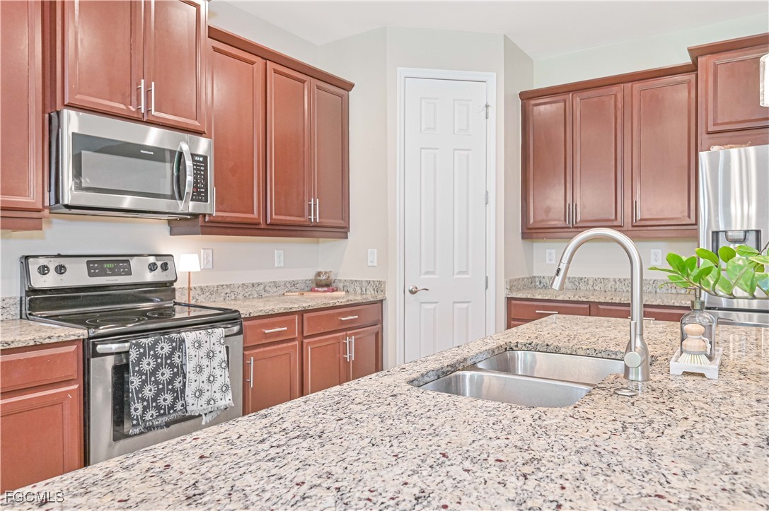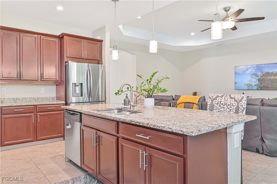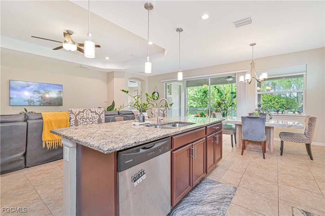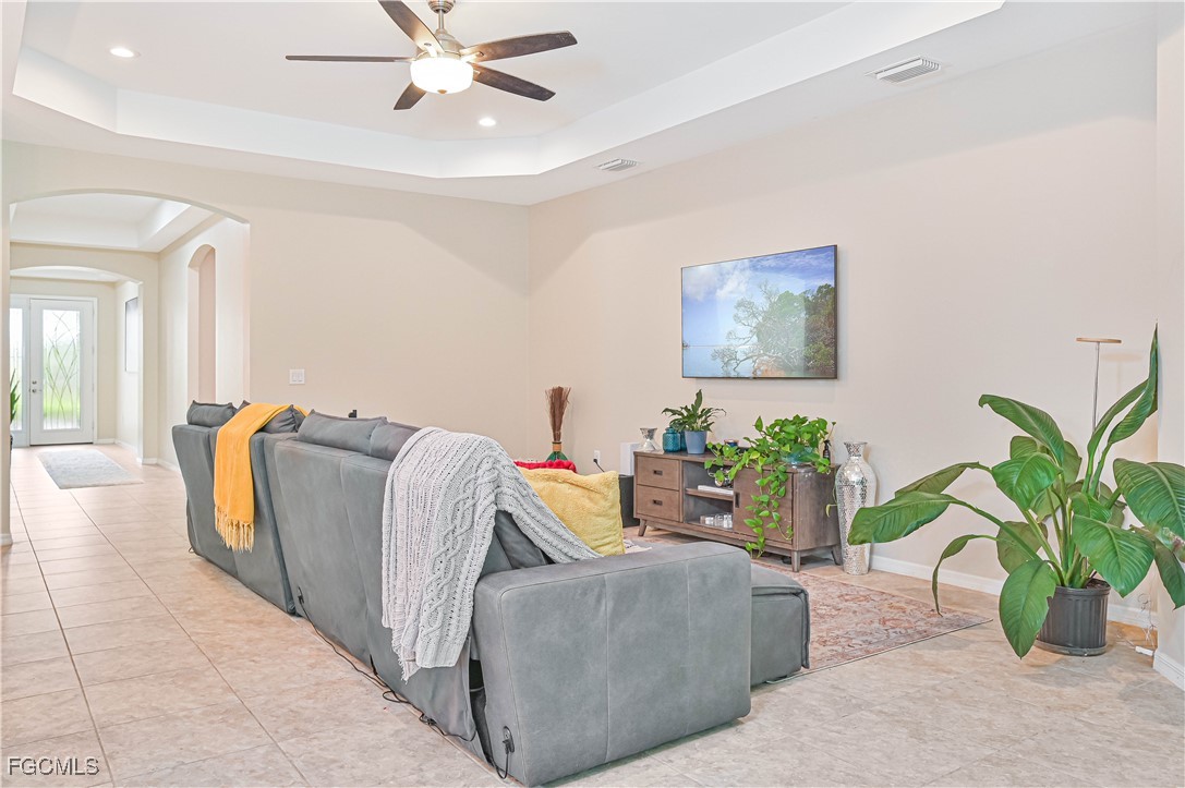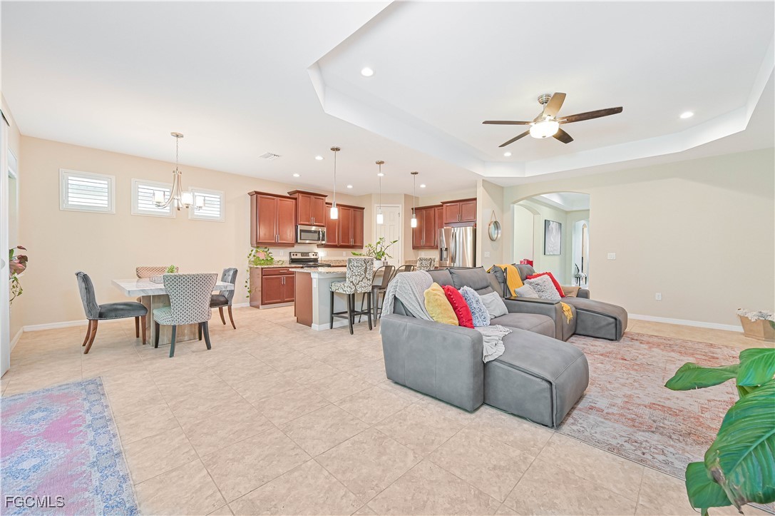 Welcome to this beautifully maintained 4-bedroom + den, 3.5-bath home featuring the highly sought-after Ashbury floorplan. From the moment you arrive, you’ll be impressed by the modern glass entry door that sets the tone for the stylish interior. Inside, enjoy the elegance of luxury plank vinyl flooring paired with tile in all the right places, creating a seamless and low-maintenance living space. Plantation blinds throughout add a timeless touch while offering privacy and light control. The open-concept layout provides spacious living and dining areas, ideal for entertaining or family gatherings. The versatile den makes a perfect home office, man cave, playroom, or formal dining. Step outside to a fully fenced-in yard that backs up to a private wooded view—your own tranquil retreat for morning coffee or weekend relaxation. There is a half bath on the lanai and the yard has plenty of room for a pool. Lindsford is a gated community is central Fort Myers close to shopping, restaurants, I75, RSW airport, spring training camps, and beaches. The community is gated with a resort style pool, fitness, tennis, basketball, clubhouse, and bocce. John Yarbough bike/jog trail runs right thru the neighborhood. Very low HOA fees that include lawn care. No Flood Insurance required. Don’t miss your chance to own this exceptional home that blends function, style, and privacy. Schedule your showing today!