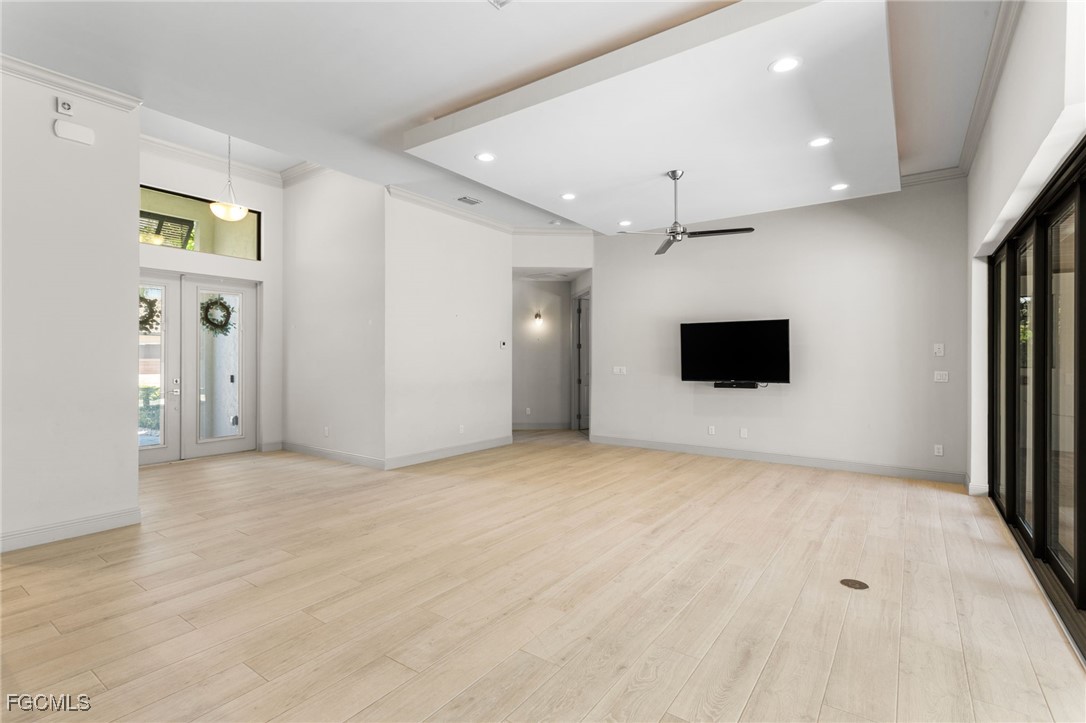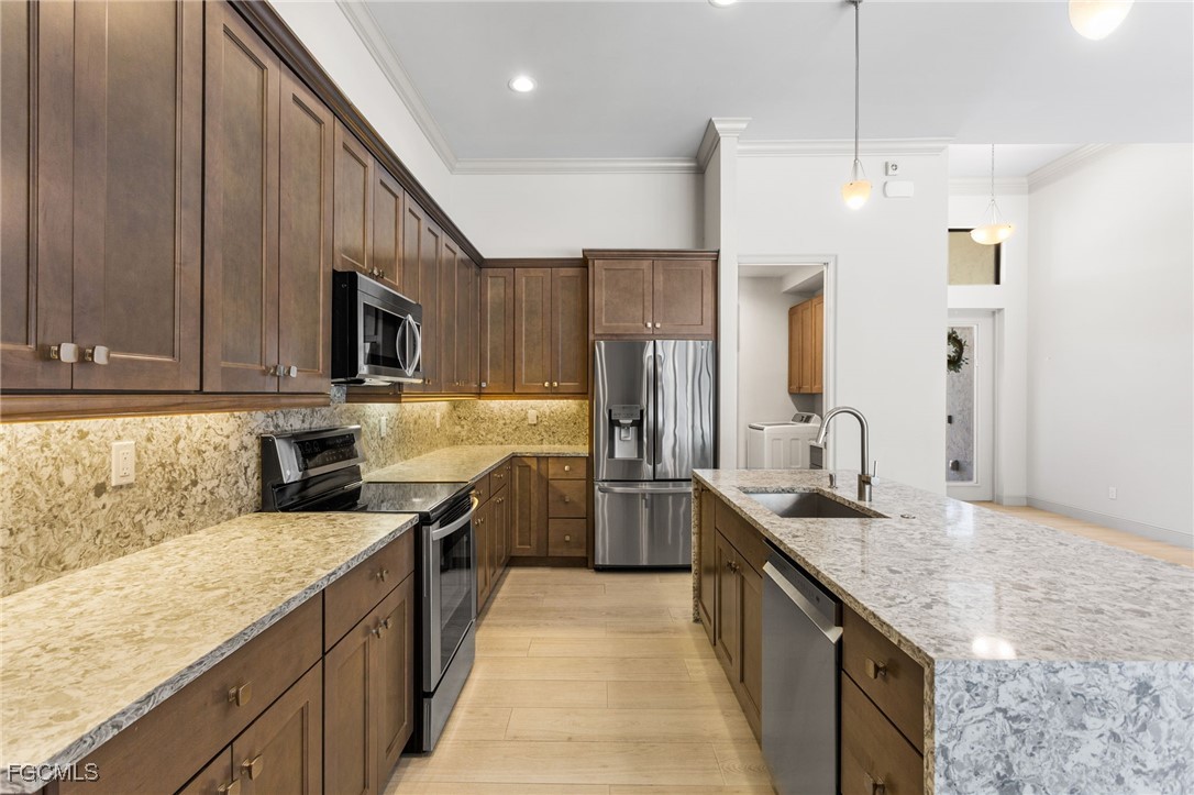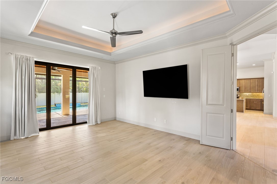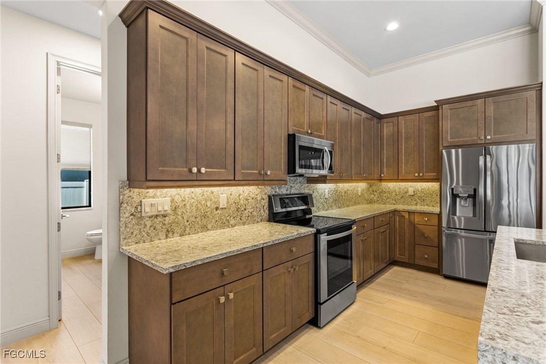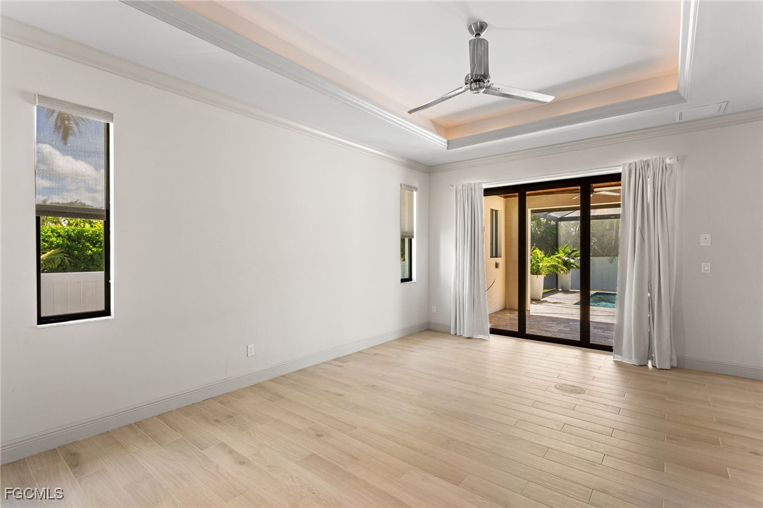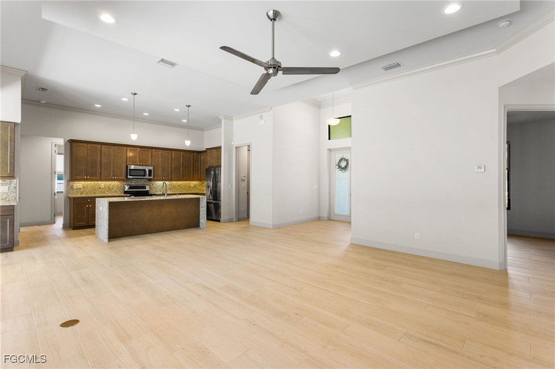 Located in the sought-after Southwest Cape Coral area, this stunning 3-bedroom + den, 3-bath home sits on an oversized corner lot with desirable Southern exposure. Designed for both comfort and style, this home features an open floor plan with soaring ceilings, elegant tray ceilings, and crown molding throughout—perfect for entertaining or relaxed living. Step outside to your private backyard oasis with a heated pool, sun shelf, tranquil water features, and a luxurious PebbleTec finish—ideal for enjoying Florida’s year-round sunshine. The heart of the home is the chef-inspired kitchen, boasting quartz countertops, a large waterfall island, custom cabinetry, and premium stainless steel appliances. Impact windows and doors throughout and automatic hurricane shutters for the lania. Barkyard is partially turfed, perfect for outdoor activities. No expenses spared in this meticulous home. Conveniently located just minutes from Cape Harbour, top-rated restaurants, shopping, schools, and beautiful parks, this home offers the perfect blend of convenience and tranquility. Whether you’re seeking a year-round residence or a luxurious winter retreat, this property is an exceptional opportunity in one of Cape Coral’s most desirable neighborhoods.